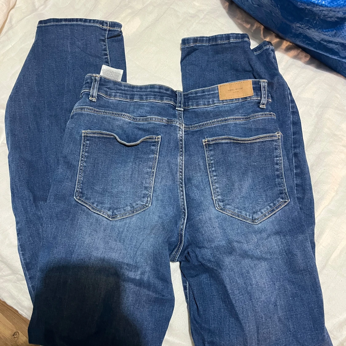 Snygga blå jeans från Vero Moda med bootcut passform och klassisk femficksdesign. Jeansen har medelhög midja och är tillverkade i mjuk denim med lätt tvättad look. Perfekta för dig som gillar en avslappnad men trendig stil.