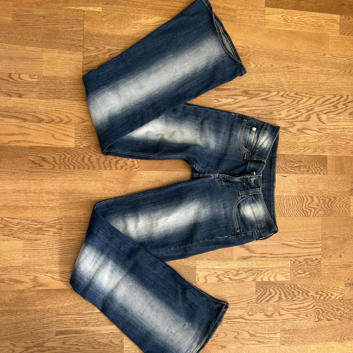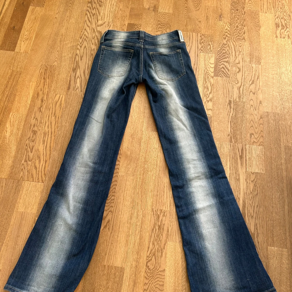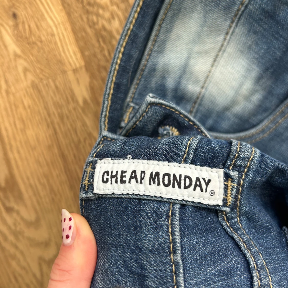 Snygga blå bootcut jeans från Cheap Monday med ljusa partier framtill och baktill. Klassisk femficksmodell med normal passform och låg midja. Jeansen är tillverkade i denim och har en cool vintagekänsla. Köpte på Vinted men var för stora för mig!