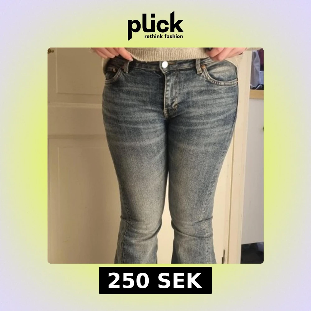 Snygga blå jeans med bootcut-modell, låg midja. Storlek W28 L32.