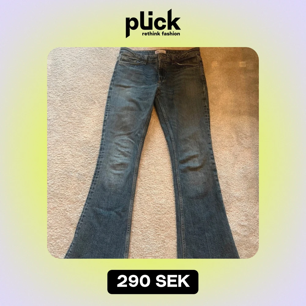 Säljer ett par snygga blå bootcut jeans från Zara. Super bra skick. Skriv för mer frågor❤️