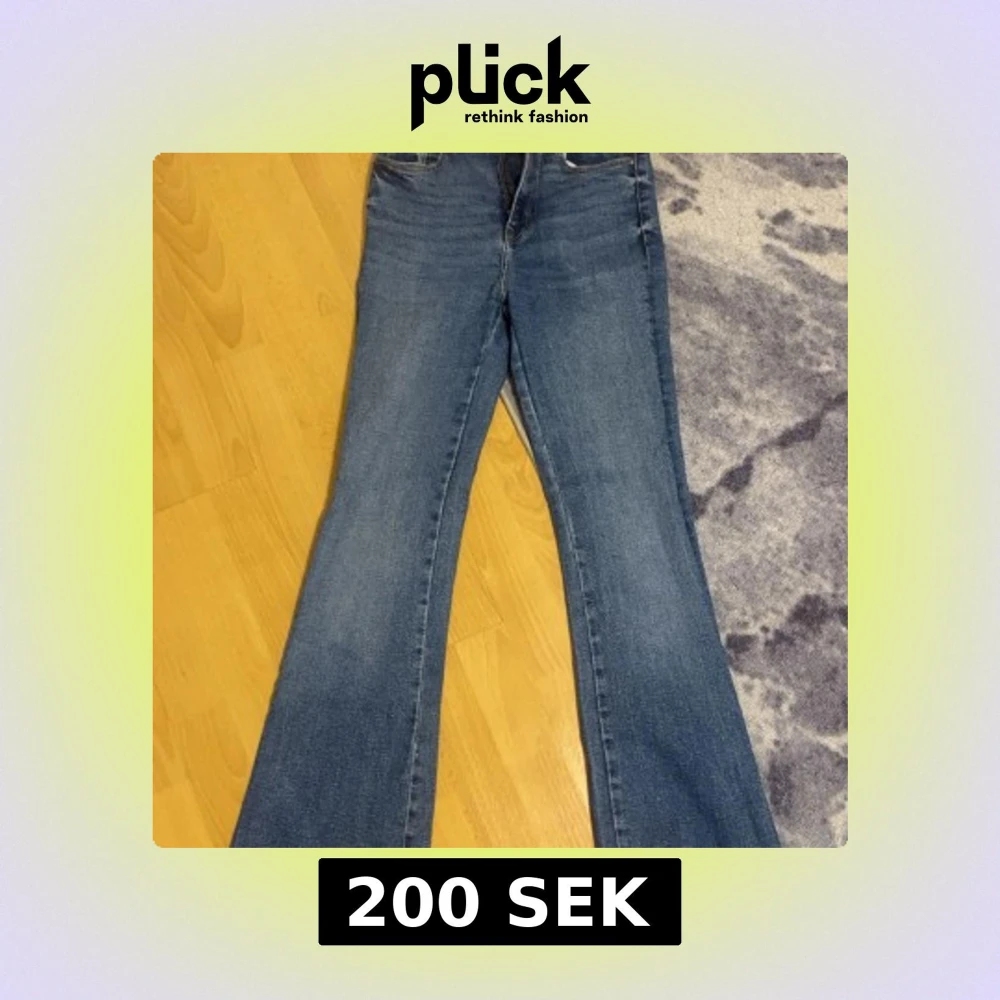 Snygga blå bootcut jeans från Zara i storlek 36. Klassisk femficksmodell med normal passform och lätt utsvängda ben. Jeansen är tillverkade i jeansmaterial med en cool tvättad look och passar perfekt till sneakers eller boots. Pris kan diskuteras