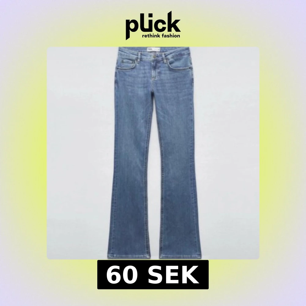 Klassiska blå bootcut jeans med fem fickor och normal passform. Jeansen har en lätt utsvängd benslut och är tillverkade i denim. Perfekta för en avslappnad stil och passar till många olika outfits. Har används så har defekter se bild 2 och 3