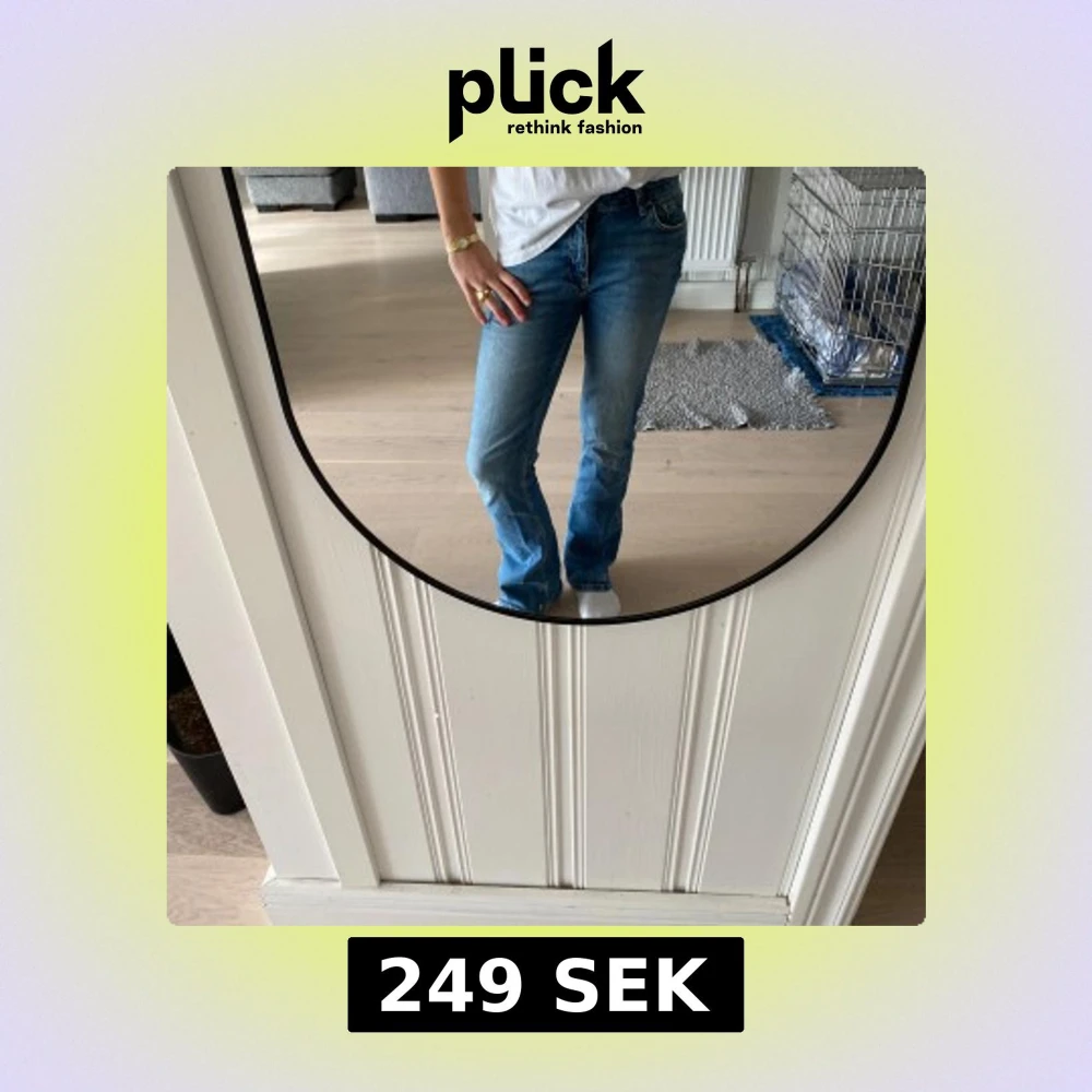 Snygga blå jeans från gina tricot med klassisk bootcut-passform. Jeansen har en medelhög midja och är tillverkade i mjukt denimtyg. Perfekta för dig som gillar en tidlös look med lite utsvängda ben. Passar till sneakers eller boots. 🌟💘