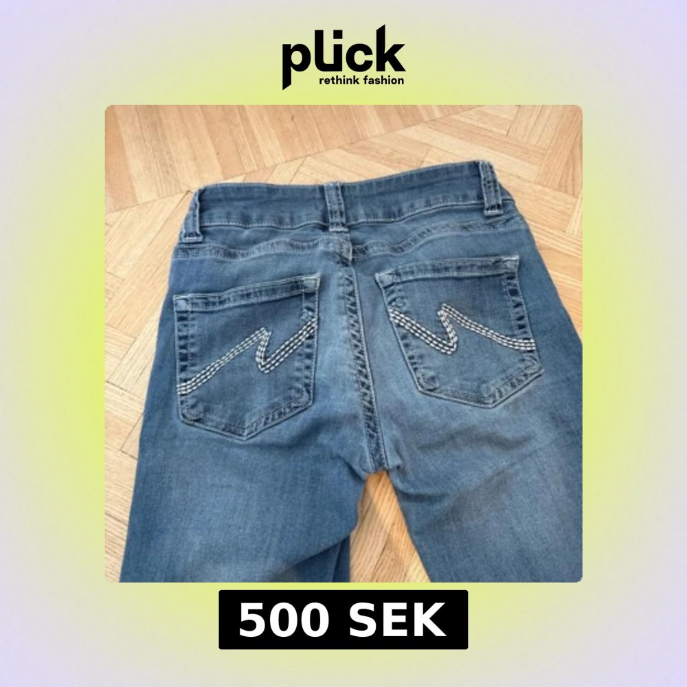 Snygga blå jeans med bootcut passform och broderade detaljer på bakfickorna. Klassisk femficksmodell med normal midja och dragkedja framtill. Perfekta för en avslappnad och trendig look.