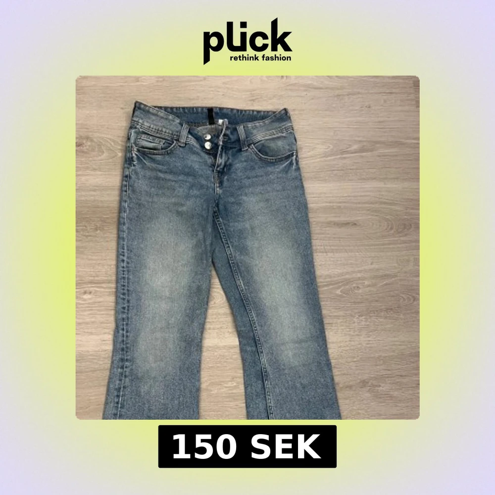 Snygga ljusblå bootcut jeans med broderade detaljer på bakfickorna och dubbla knappar framtill. Jeansen har klassisk design och är tillverkade i mjukt denimtyg. Perfekta för dig som gillar lite extra detaljer. Säljer dessa jeans då dem är för stora och kommer inte till användning. Har använt detta jeans några gånger, men det har börjat bli ett litet hål vid ena bakfickan, som man lätt kan sy ihop igen, samt en liten lim fläck som inte vill gå bort. Mycket sköna på. Pris kan diskuteras ☺️