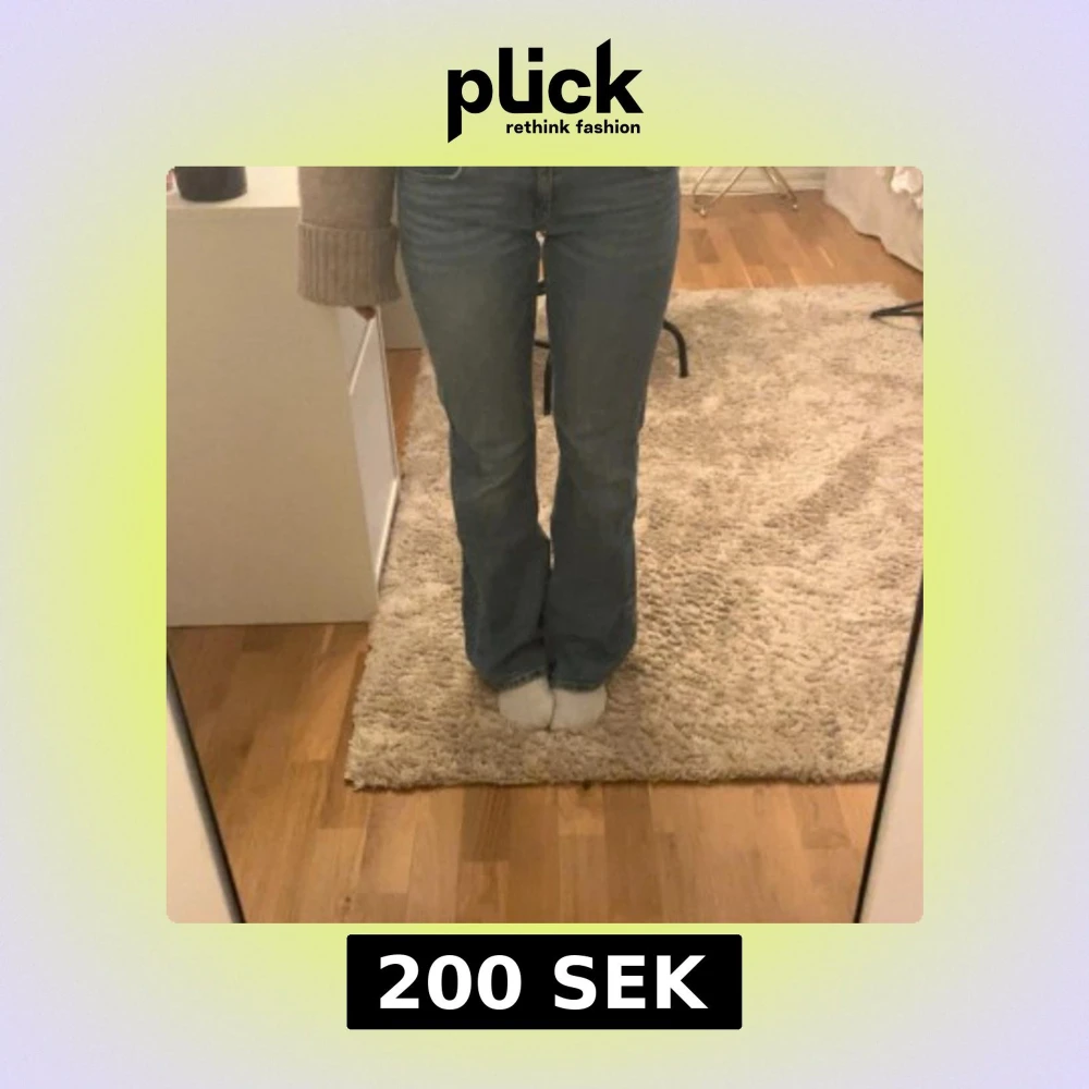 Säljer ett par blå bootcut jeans med snygga fickor bak med lock och knapp. Innerbenslängd 79cm och midjan rakt öcer 37cm. Pris kan diskuteras❤️