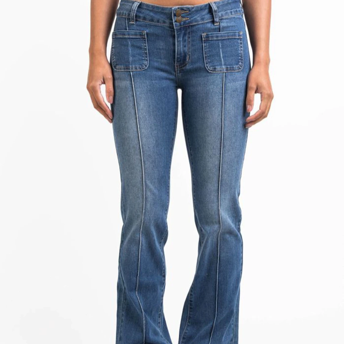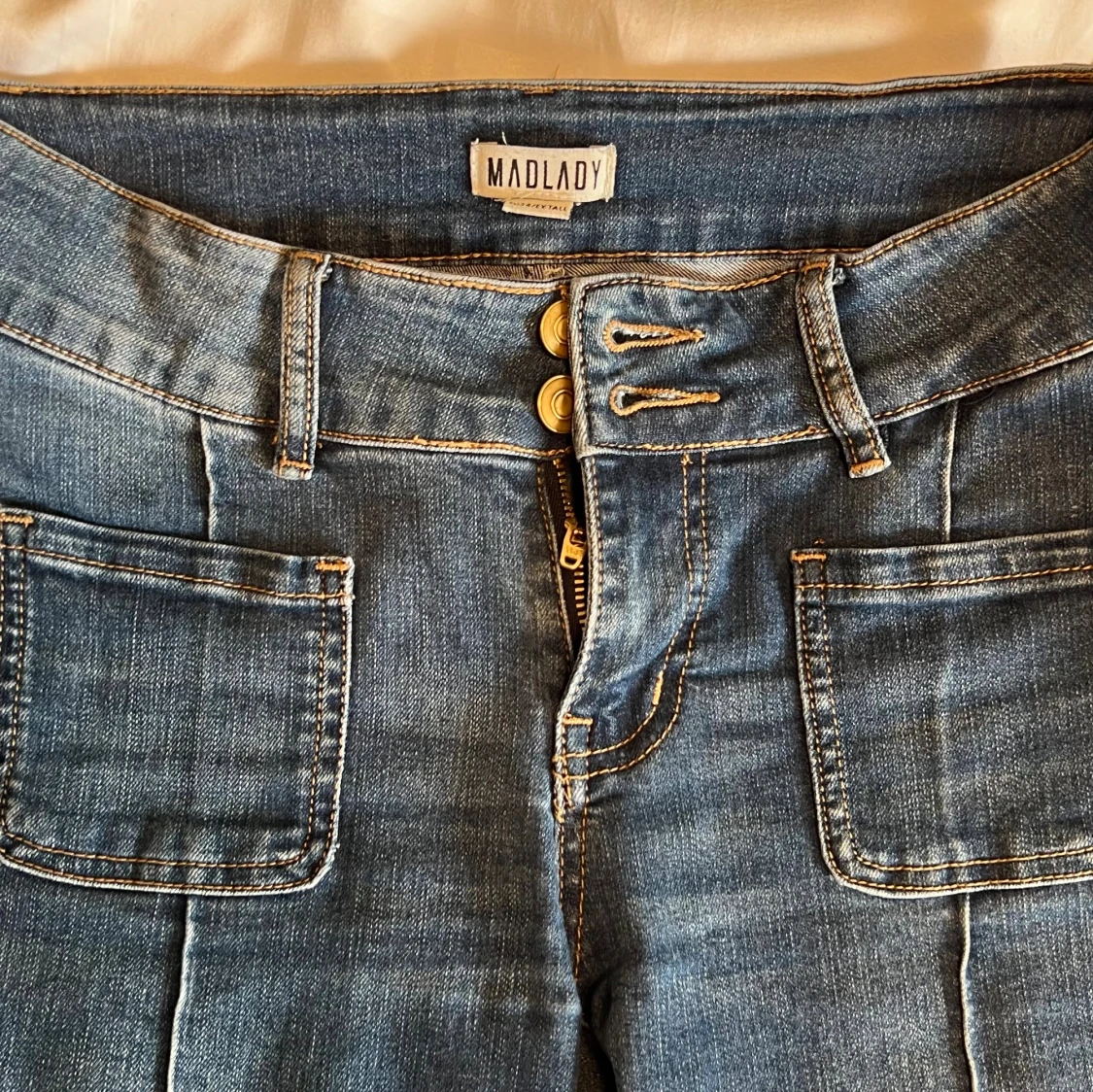 Madlady Claire 01 Low bootcut jeans i längden Extra-Tall (90cm innersöm) storlek 34. Passar mig som är 182 cm lång. Dragkedjan har gått sönder och behöver bytas. Går att fixa hos en skräddare för 100-150kr. Utöver det är byxorna i mycket fint skick!