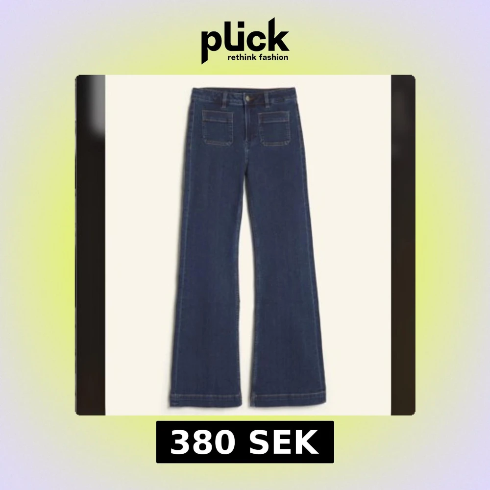 Snygga blå jeans med bootcut-modell och två stora fickor framtill. Klassisk denimlook med raka ben som blir vidare nedtill. Storleken är 24/32