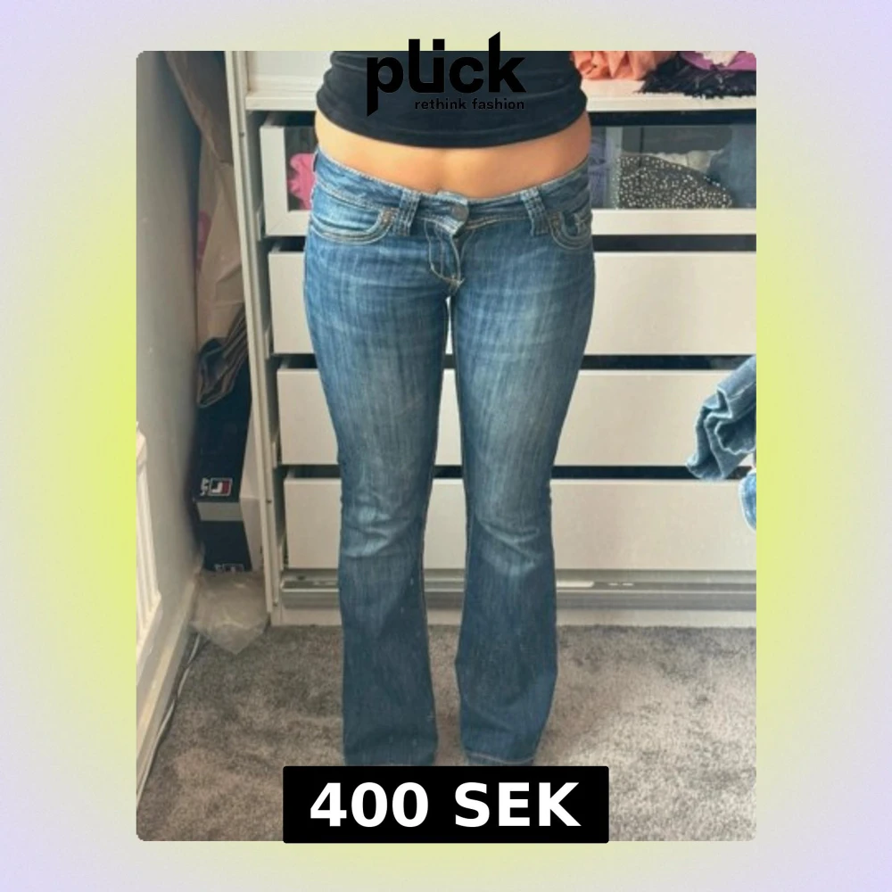 Snygga blå jeans från A&F med låg midja och bootcut passform. Mina absoluta favoritjeans som blivit för små. Det tar verkligen emot att sälja dessa, de sitter så snyggt och är så bekväma. Midjemått: 38cm. Innerbenslängd: 76,5.