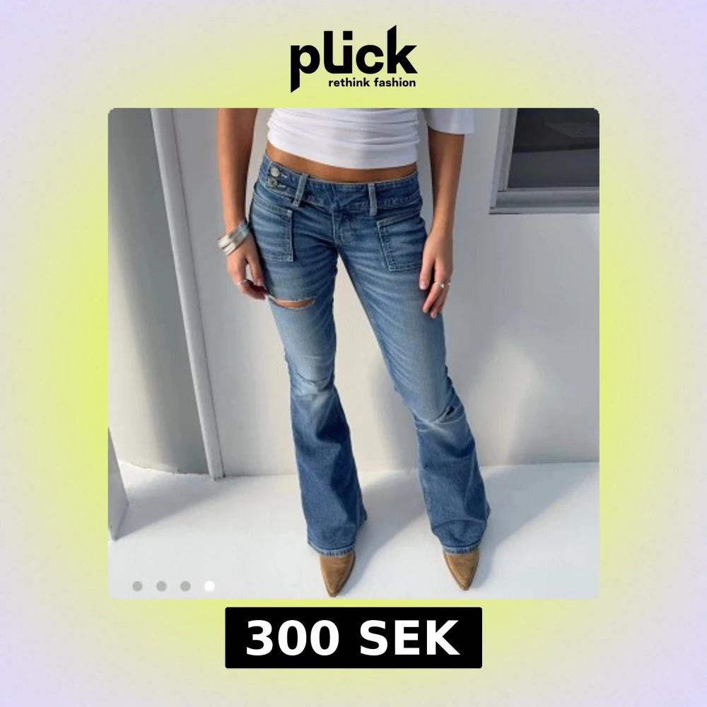 Säljer då dom inte kommer till användning, använda men inget som syns🫶🏻 OBS!! Har sprättat upp längst ner på jeansen då som va snäppet för korta för mig men man kan sy upp igen om man vill utan problem!