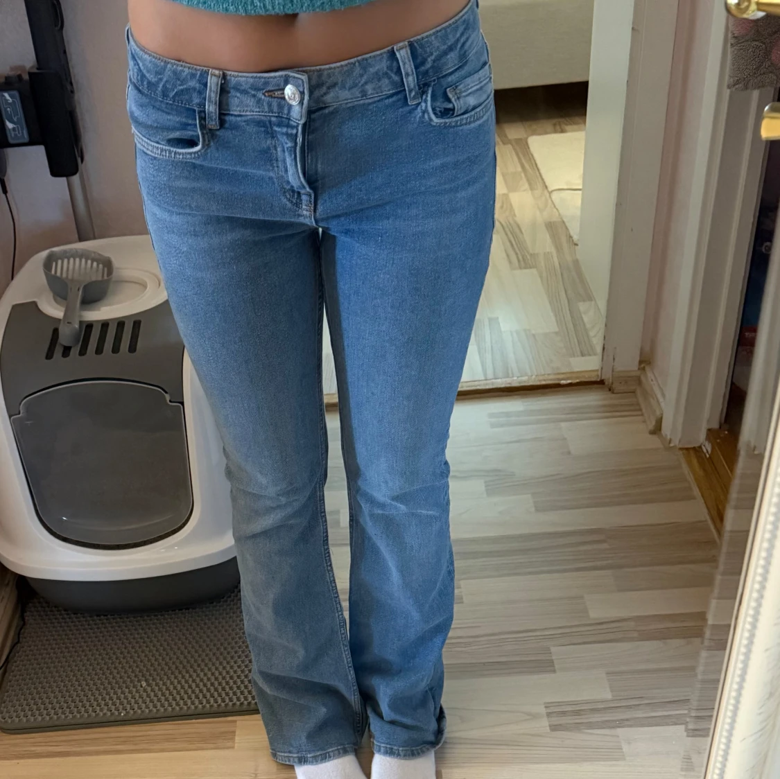 Snygga ljusblå jeans med bootcut-modell och klassisk femficksdesign. Jeansen har låg midja och raka ben som blir lite utsvängda nertill. Perfekta till sneakers eller boots och passar till många olika stilar.