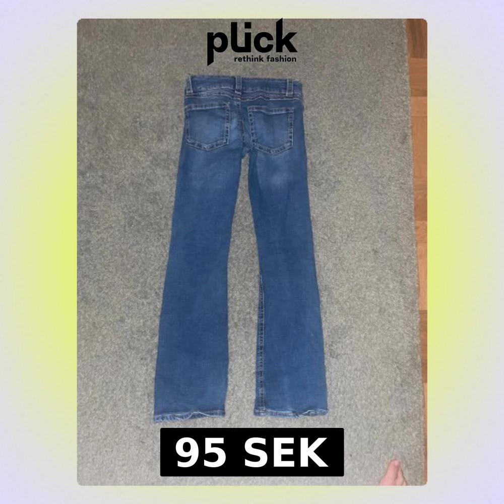 Snygga blå jeans med bootcut passform och låg midja. Klassisk femficksdesign och lätt slitna detaljer framtill och baktill. Perfekt för dig som gillar en avslappnad och trendig stil. Materialet är jeans med skön stretch. Säljer pga för korta GÅR EJ ATT HITTA I BUTIK LÄNGRE!