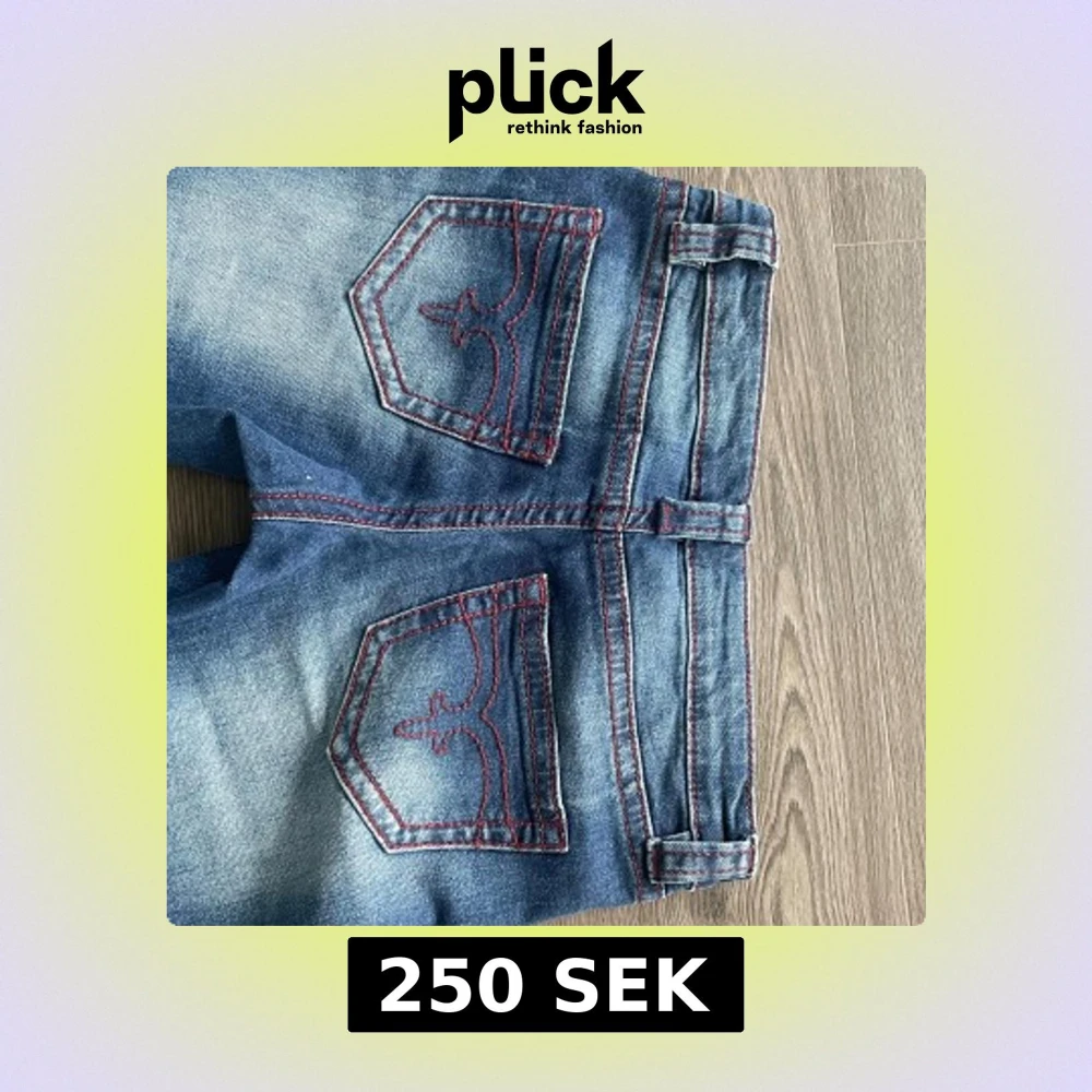 Snygga blå jeans från Gina Tricot 14+ med bootcut-modell och markerade röda sömmar. Jeansen har fina fickor med coola detaljer på bakfickorna. Stl S och säljes pga att dom är för korta för mig, använda ca 1 gång. Tvättar innan jag skickar💕Pris kan diskuteras