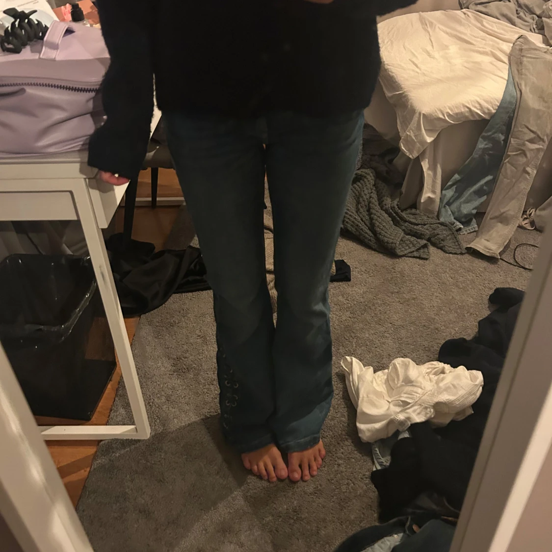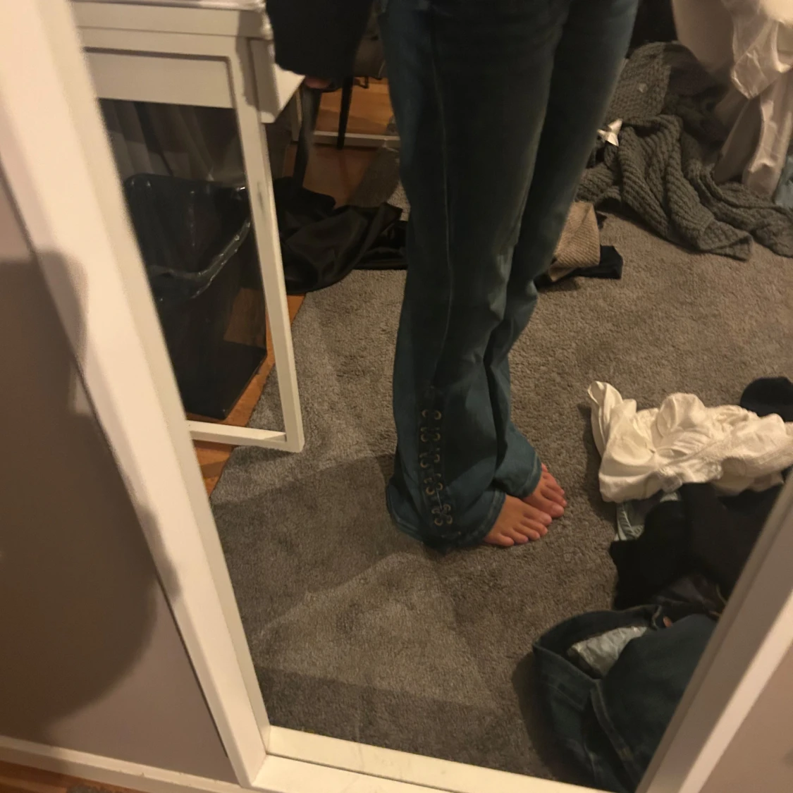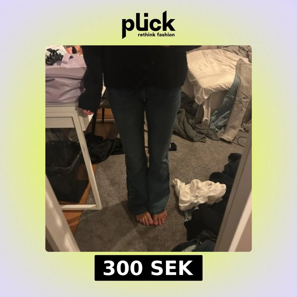 Nästan helt oanvända jeans med snörning köpta på hm, sitter som en 32/34 på mig, är 164 cm som referens