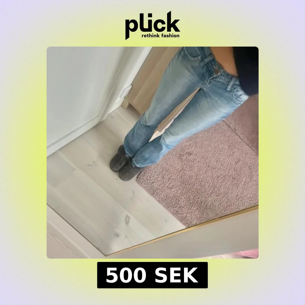 Snygga ljus blå bootcut jeans, midjemåttet rakt över är ca37 cm och ytterbens längden är 99 cm 💕