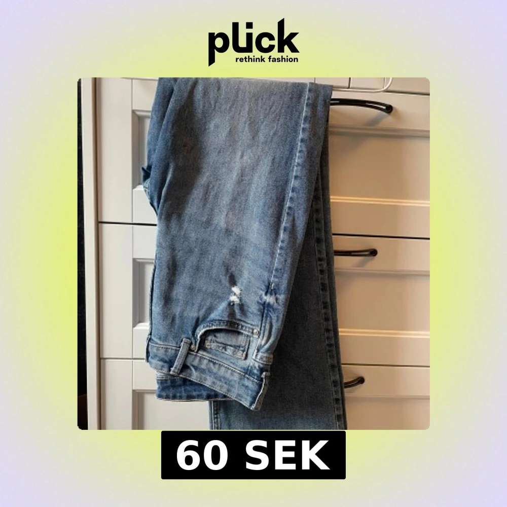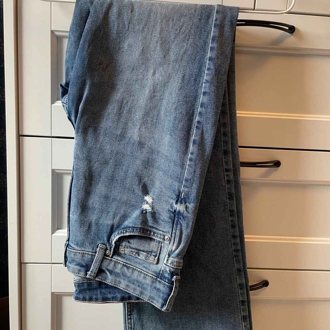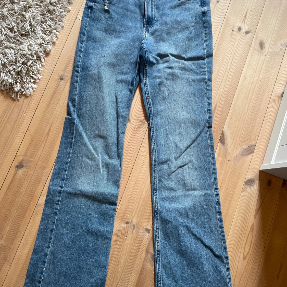 Säljer ett par klassiska blå bootcut jeans med normal passform. Tyvärr har jag spillt nagellack på dem men det är inget som syns så tydligt.