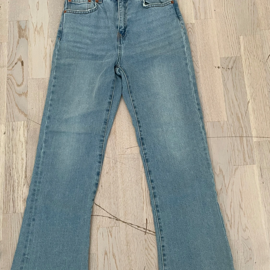 Snygga ljusblå bootcut jeans i klassisk denim med fem fickor och dragkedja. Jeansen har en rak passform upptill och utsvängda ben, vilket ger en retroinspirerad look. Perfekta för dig som gillar en avslappnad men trendig stil.