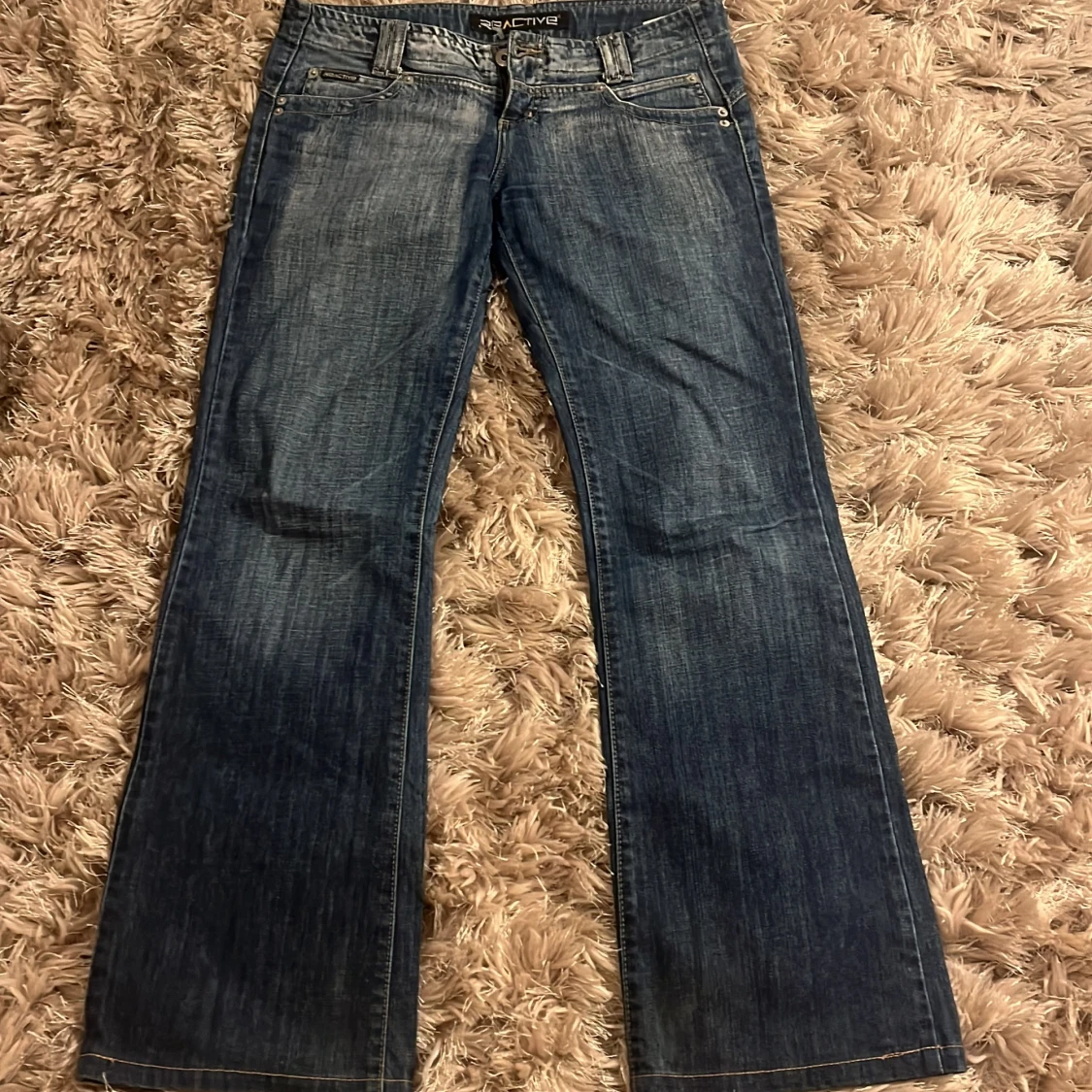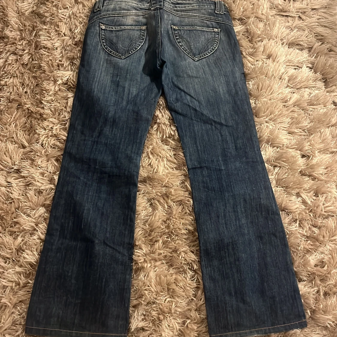 Snygga blå bootcut jeans. Väldigt lågmidjade!! Helt nyskick.