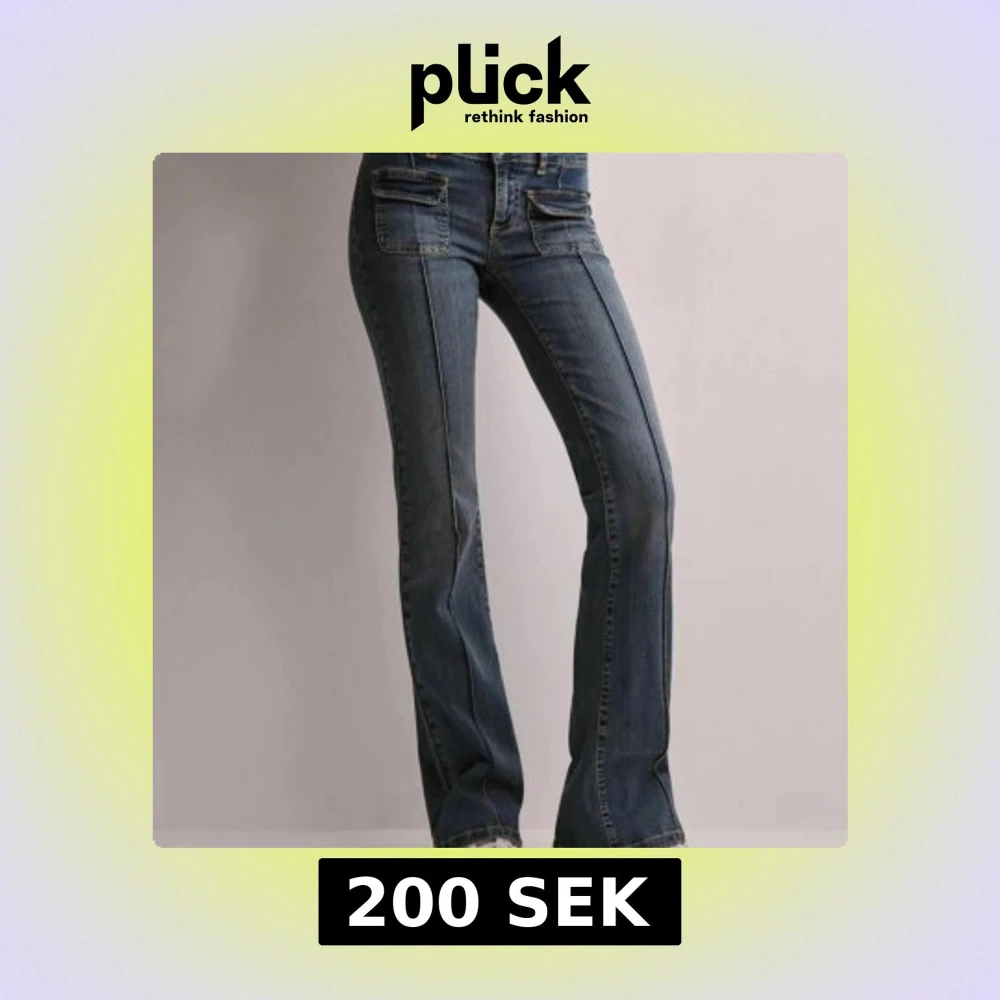 jättesnygga blåa bootcut jeans med låg midja. jeansen är från NELLY och är i storlek 34!💞
