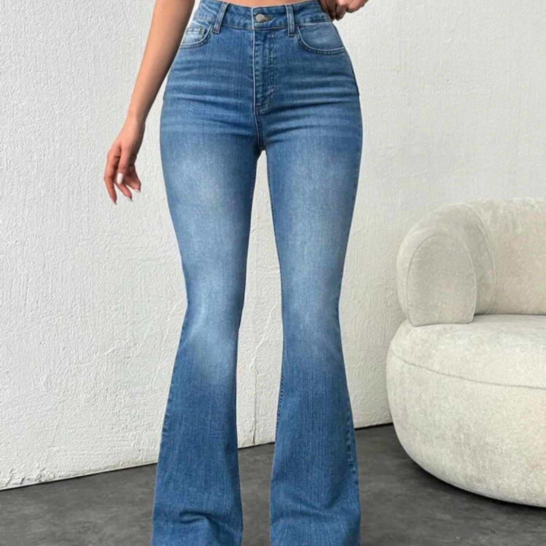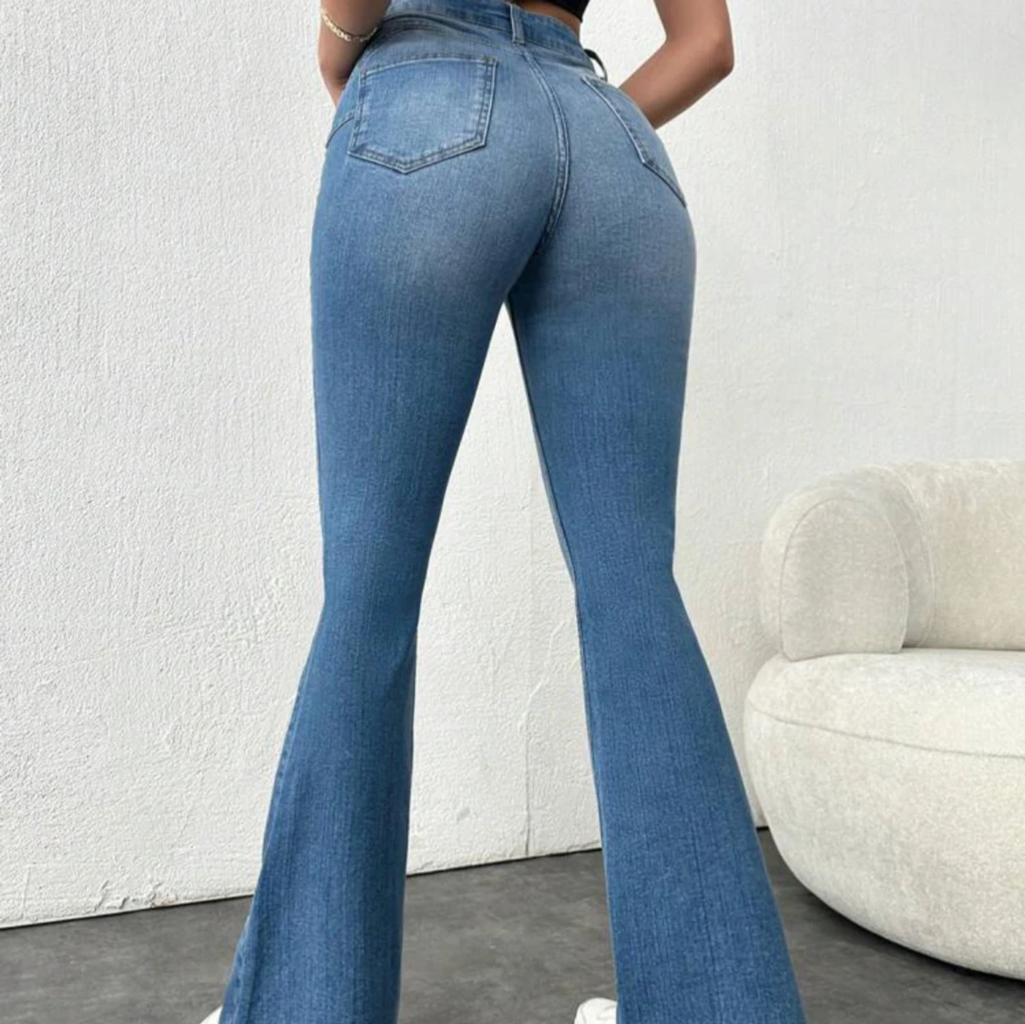Snygga blå bootcut jeans med hög midja. Perfekta för en trendig look. Nya. Säljer för de är lite för små för mig💕