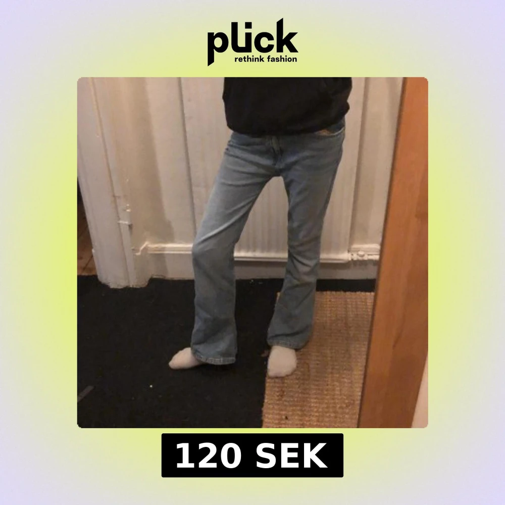 Snygga blå bootcut jeans med klassisk femficksdesign. De har en knapp och dragkedja framtill. Perfekta för en avslappnad stil.