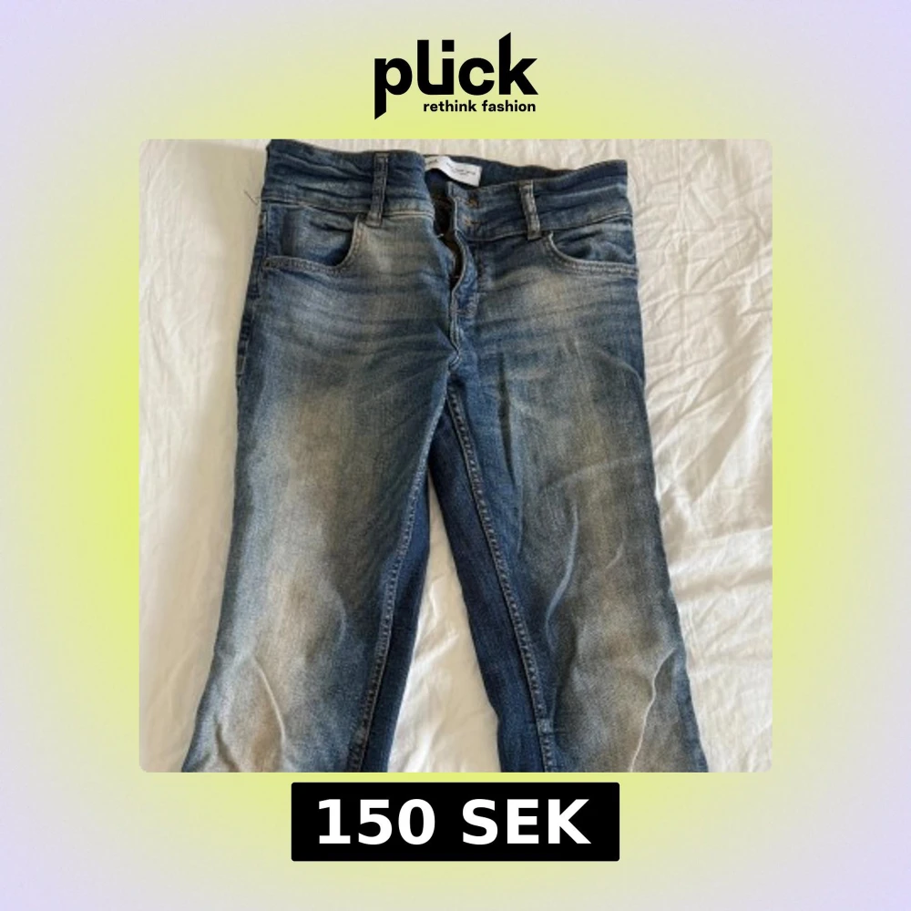 Säljer ett par klassiska blå jeans med snygga slitningar och tvättade detaljer. Jeansen köpta från bershak i bra skick, med två knappar. Köpta för 400kr