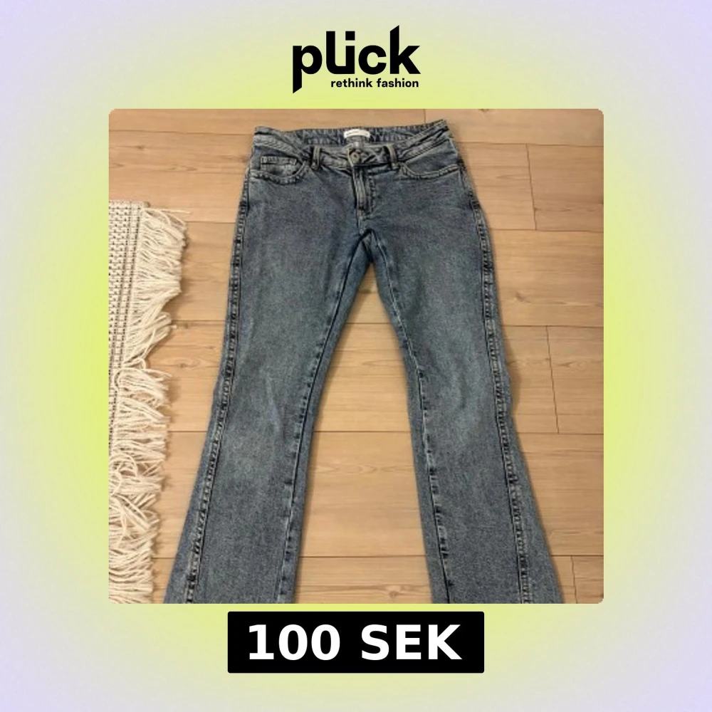Snygga blå lågmidajde bootcut jeans från Perfect Jeans med coola broderade bakfickor i kontrastfärg. Klassisk femficksmodell med bälteshällor och dragkedja. Jeansen har en lätt tvättad look och är perfekta