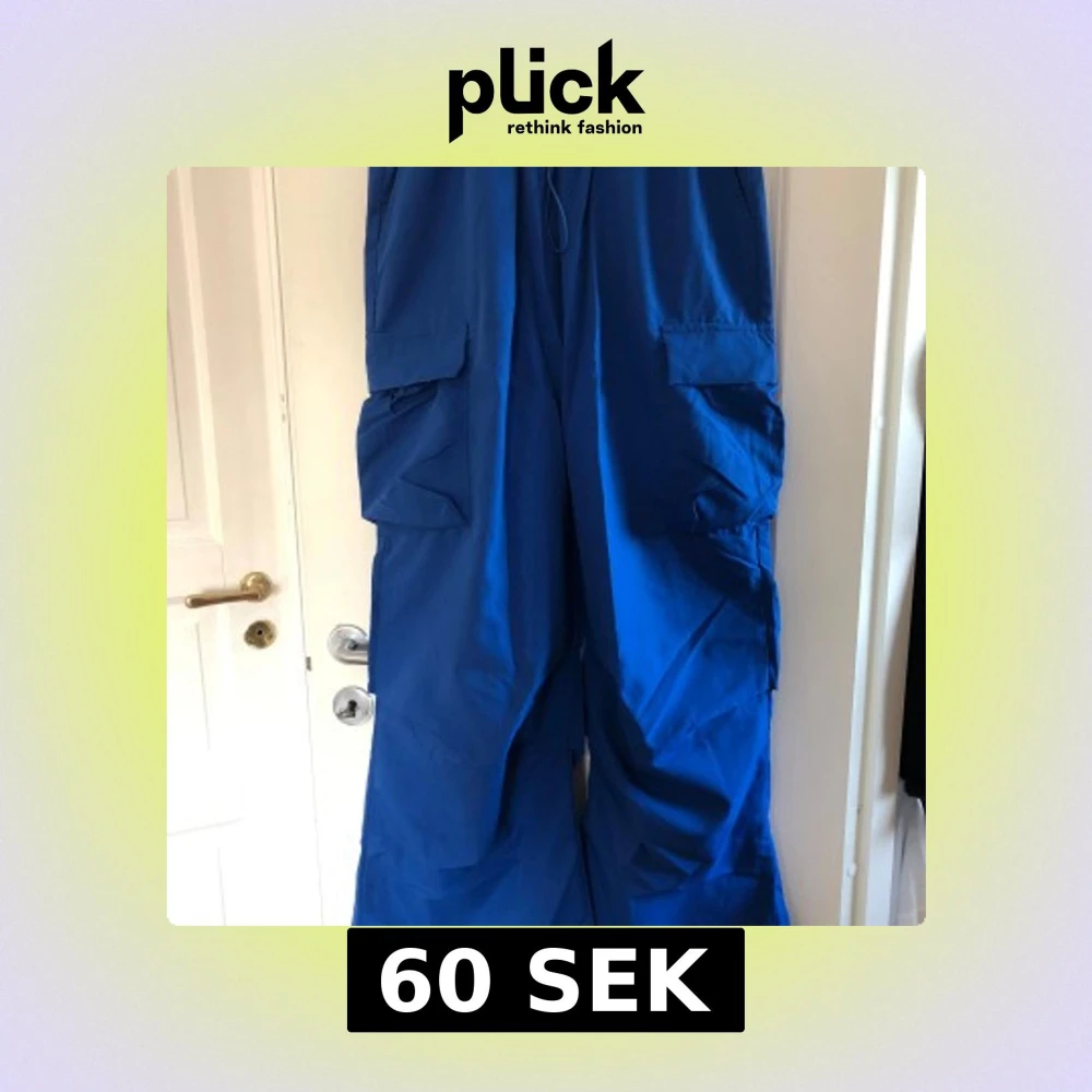 Säljer ett par blå cargopants från SHEIN i storlek S. Byxorna har flera stora fickor på sidorna och resår i midjan. Perfekta för en avslappnad och trendig look. Materialet känns lätt och bekvämt. Har använt dessa när jag tävlat i hiphop på danstävlingar 💙