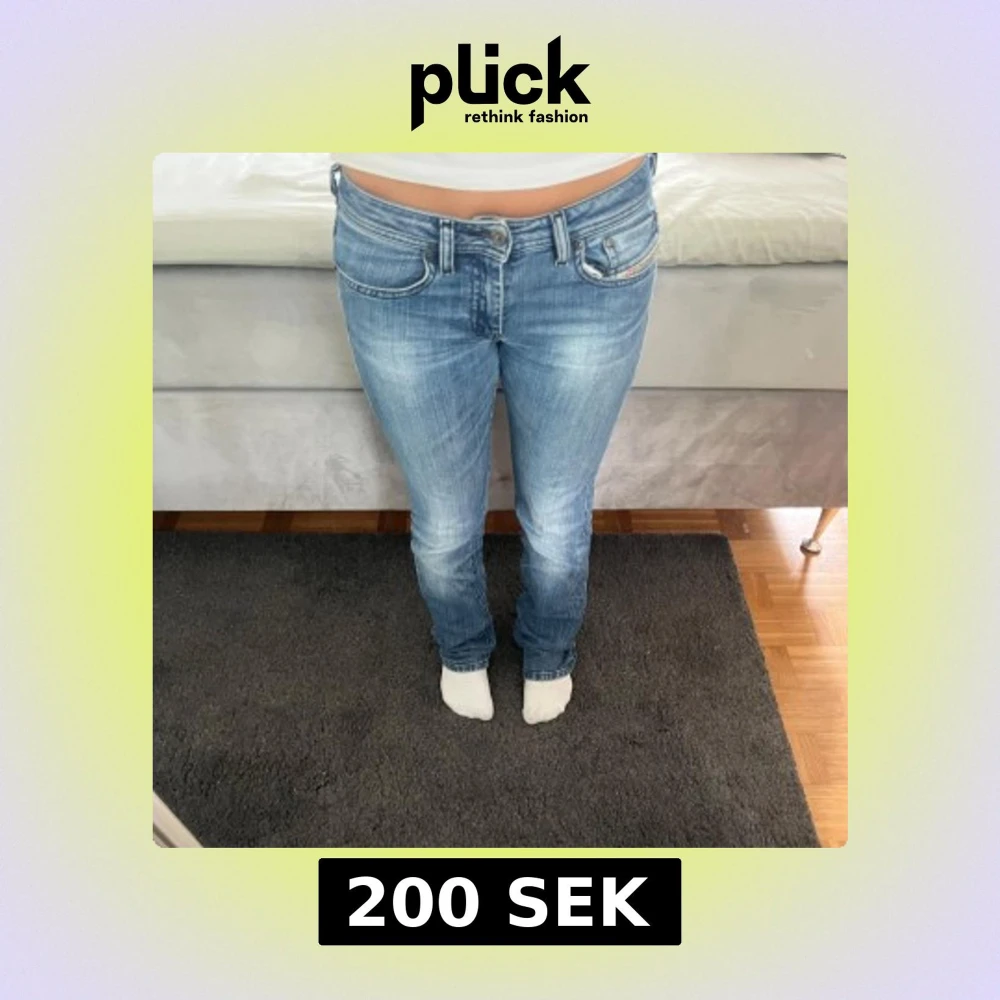 Säljer ett par klassiska blå jeans från Diesel med bootcut och snygga slitningar. Jeansen har stora bakfickor, lågmidja❤️ Midjemått 36 Benlängd 99 Kolla min profil för liknande plagg