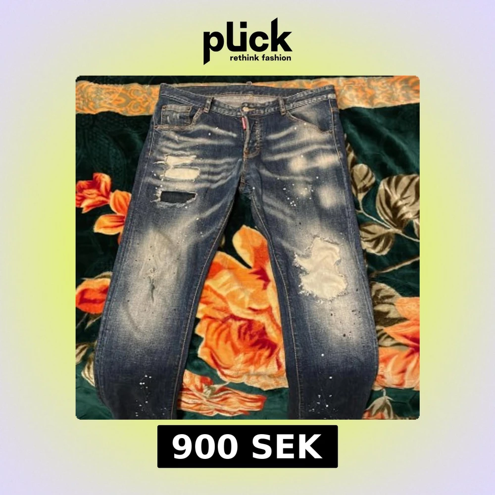 Säljer ett par blå jeans från Dsquared2 med slitningar, hål och färgstänk för en riktigt edgy look. Fick den från min kusin har kvitto till den men inte påse, äkta dsquared2 byxor sitter sköna och bra, vill få bort dem eftersom den är för stor för mig.
