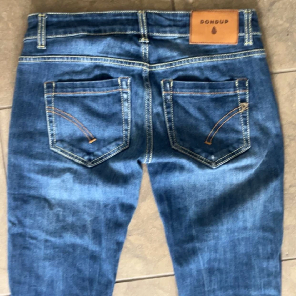 Snygga blå jeans från Dondup med bootcut passform och låg midja. Jeansen har klassiska kontrastsömmar, fem fickor och en läderpatch med logga bak. Tillverkade i mjukt denimtyg som sitter skönt och ger en avslappnad vibe.