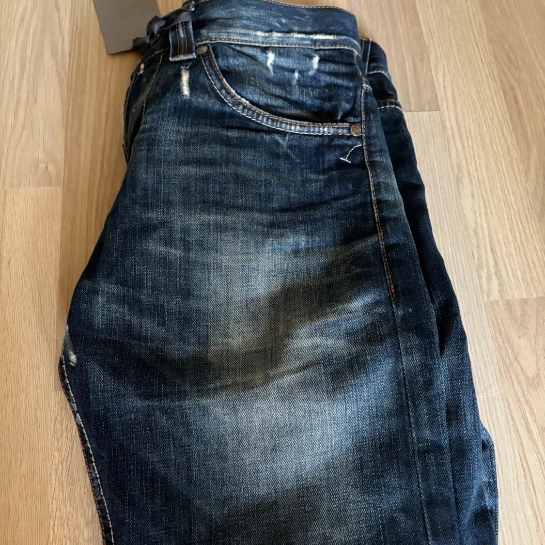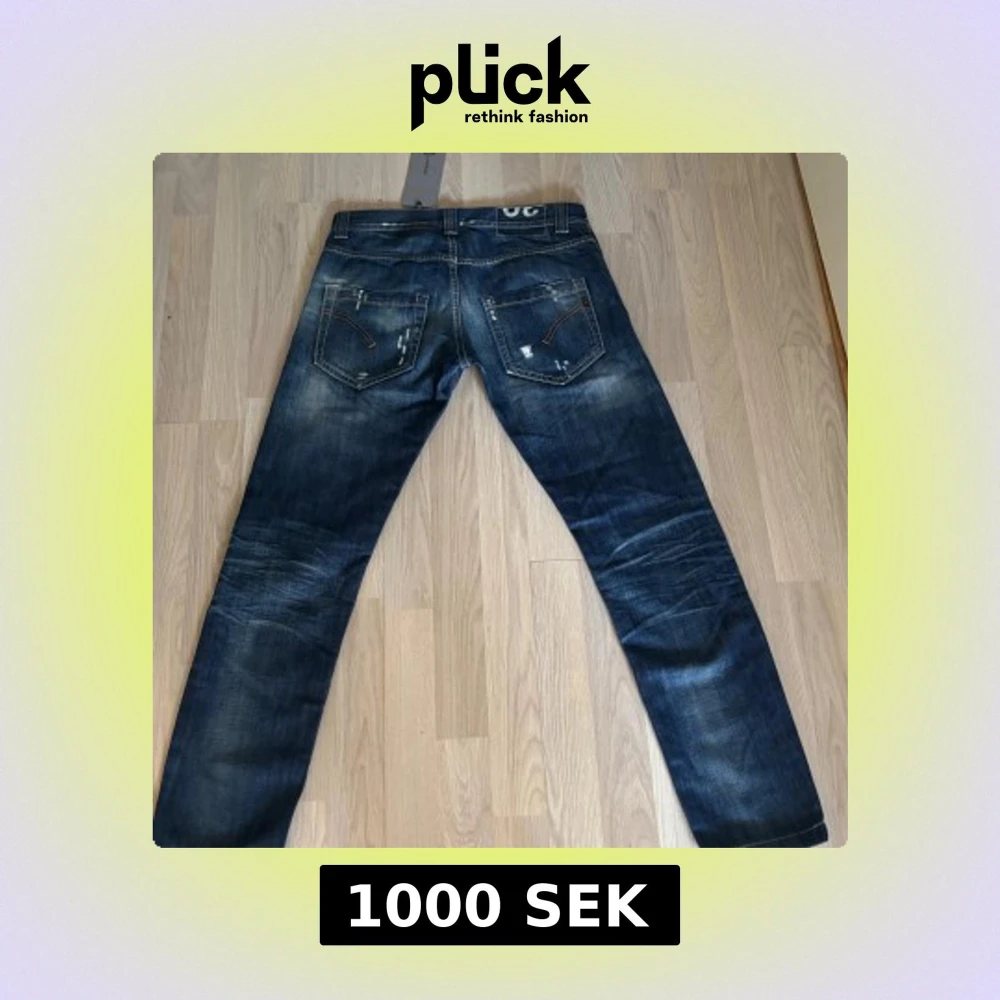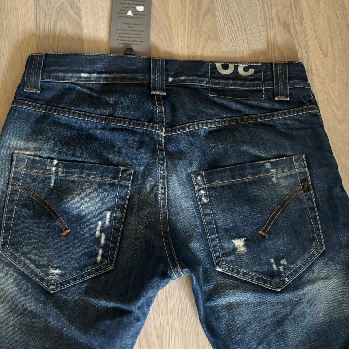 Snygga blå jeans från Dondup i modell med slitningar och tvättade detaljer. Klassisk femficksdesign, kontrastsömmar och raka ben. Jeansen har en cool, lite sliten look och är perfekta för dig som gillar streetstyle. Materialet är robust denim.