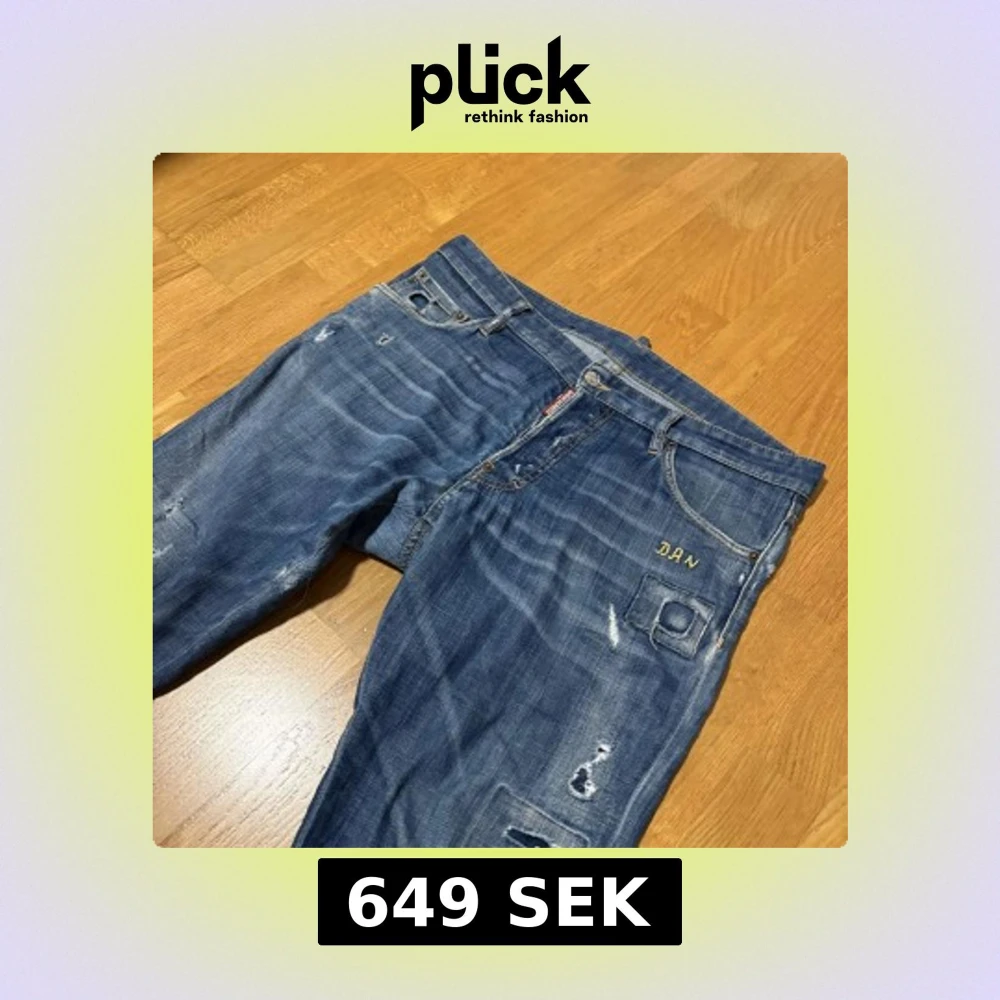 Snygga blå jeans från Dsquared2 med slitna detaljer och unik broderad ficka. Väldigt bra skick, inga skador. Storlek 50 | vårt pris: endast 649kr!! | skriv privat angående eventuella frågor eller funderingar.