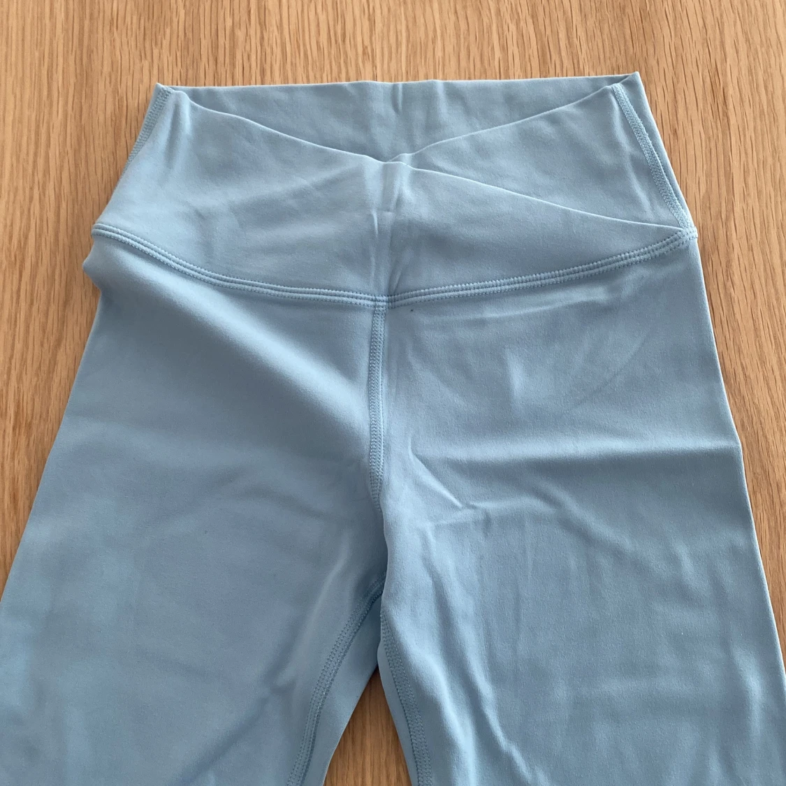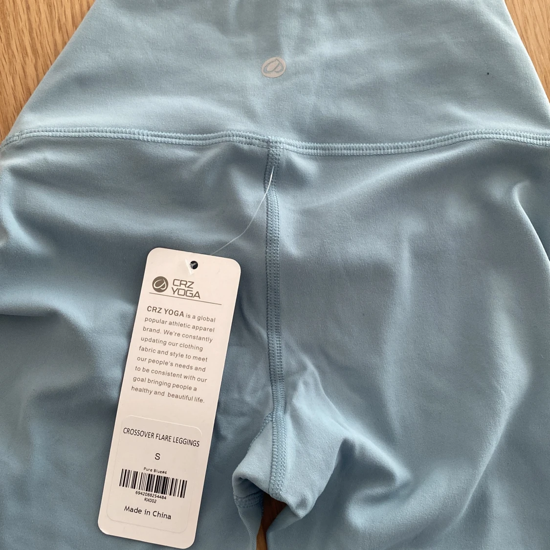 Snygga ljusblå flare leggings från CRZ Yoga. Är väldigt små för att vara s. Är väldigt stretchiga men är för korta för mig som är 168 skulle rekomendera för någon under 160 som har storlek xs eller mindre