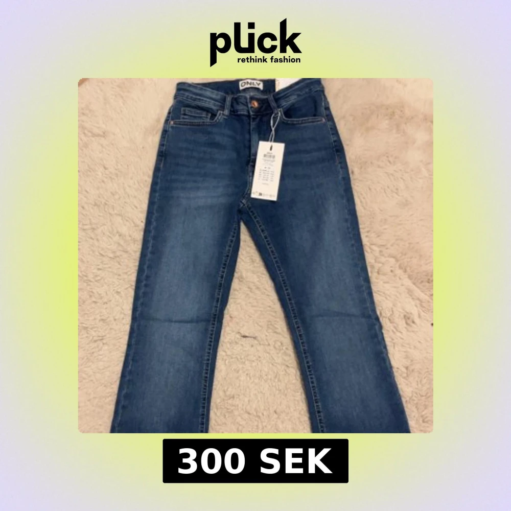 Snygga blå jeans från ONLY med flared ben och klassisk femficksdesign. Jeansen har medelhög midja och är tillverkade i stretchig denim för en bekväm passform. Perfekta för dig som gillar en trendig och avslappnad look. Jeansen är helt oanvända och köpta för 549kr