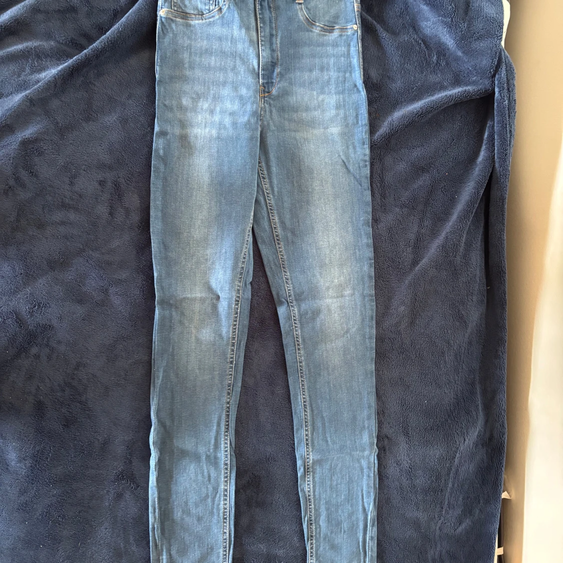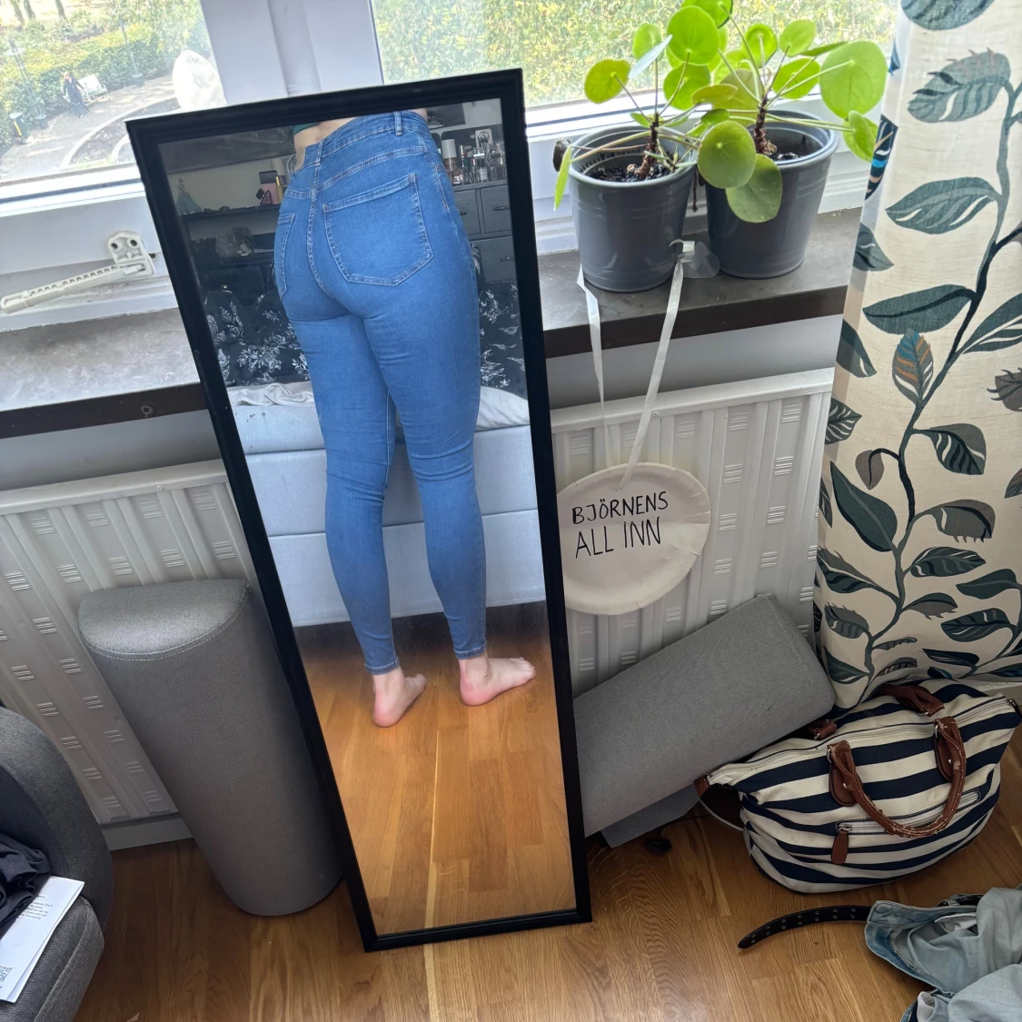 Säljer ett par ljusblå skinny jeans med hög midja. Jeansen har smal passform hela vägen ner och är tillverkade i stretchigt denimtyg för en tight och bekväm känsla. Perfekta för dig som gillar en clean och enkel look. Endast använda 2-3 gånger så är som nya. Står att de är i storlek XL men sitter precis som storlek M då jag själv oftast har M. Pris går att diskutera.