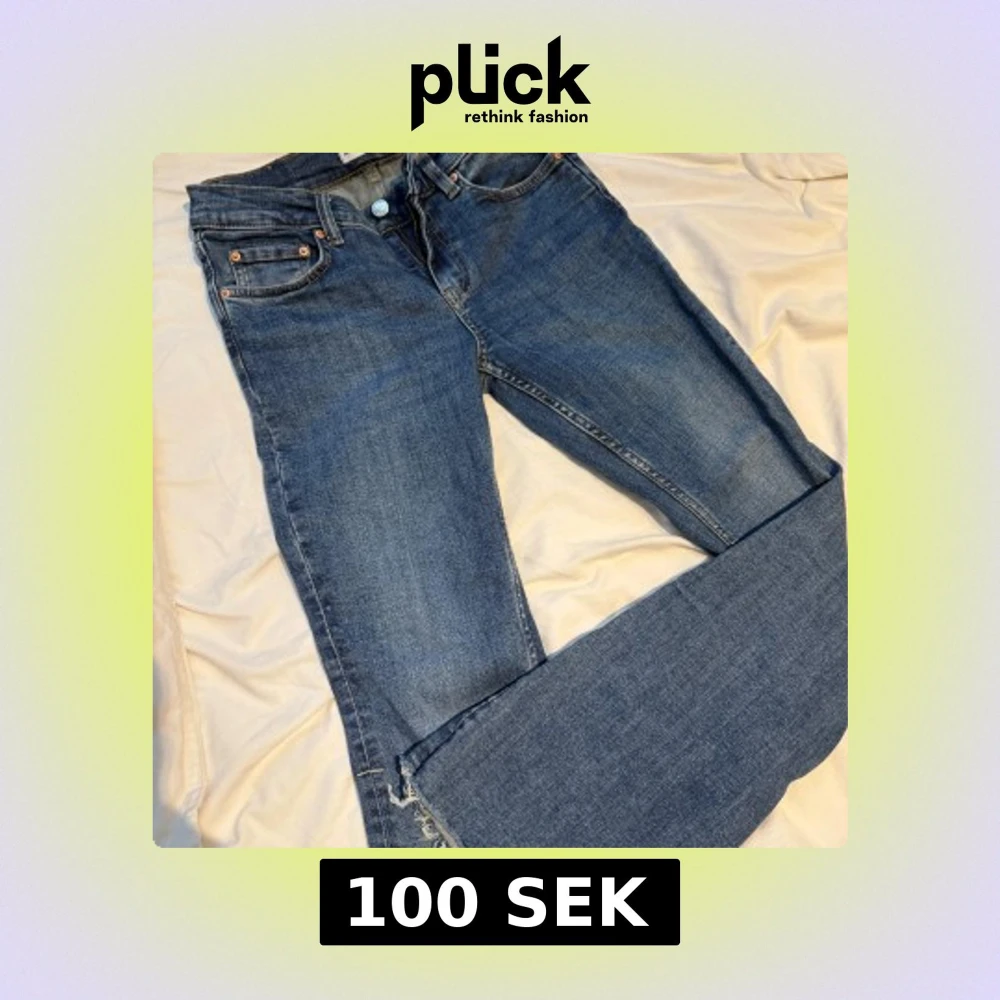 Midwaist/lowwaist jeans, klippt vid fötterna då dom var för långa, men de är fortfarande snyggt och är klippt fint 🩷passar mig som brukar ha 34 i jeans