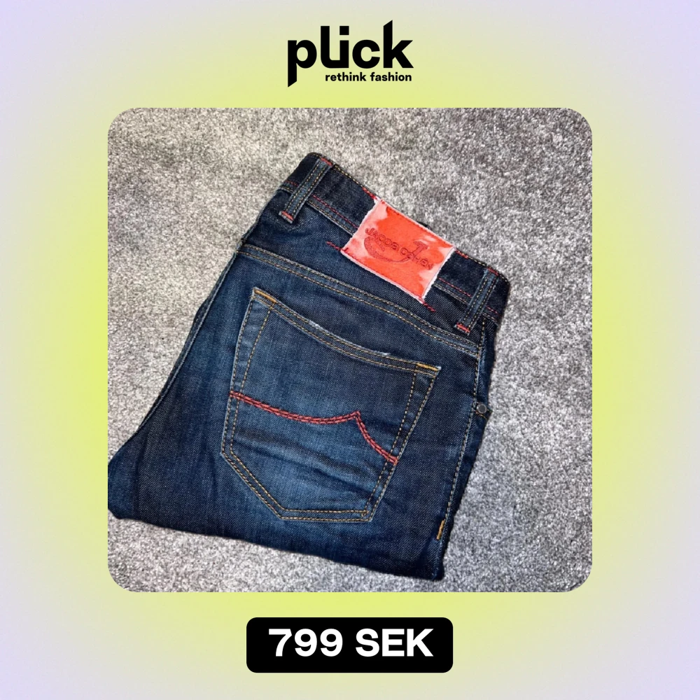 Säljer ett par galet fräscha jeans från Jacob Cohen. Blåa jenans kombinerat med röda sömmar som ger en fräsch look. Jeansen är i bra skick och är av bra kvalité. Perfekta för både vardag och fest! Nypris ca≈ 5500kr.