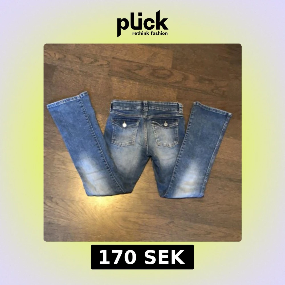 Snygga blå jeans med bootcut-stil. Nästan oanvända🩷