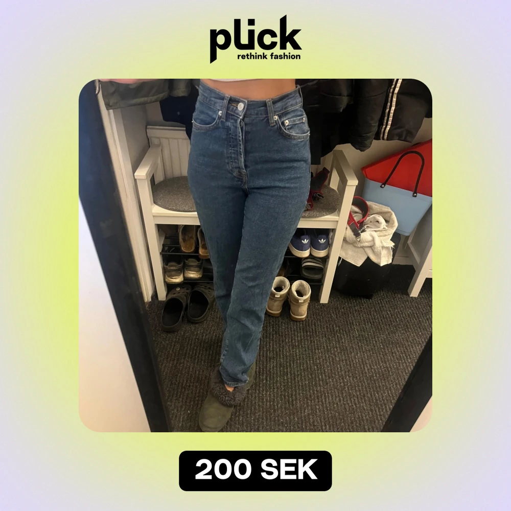 Säljer ett par klassiska blå högmidjade jeans i mycket bra skick. De har en straight passform och är perfekta för både vardag och fest. Jeansen är bekväma och stilrena, ett måste i garderoben! Passar perfekt till sneakers eller boots. Säljer ett par likadana i ljusblåa 🩵