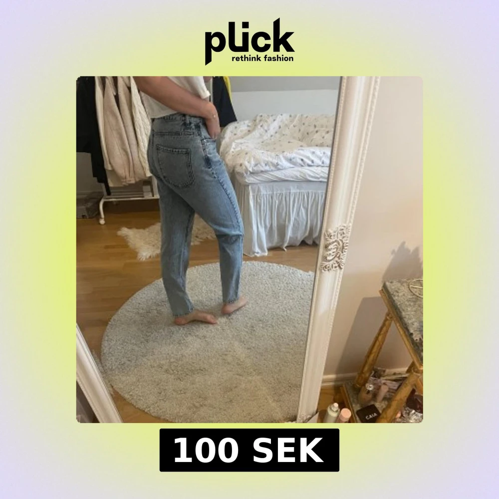 Säljer ett par klassiska blå jeans med hög midja och raka ben. Jeansen har fem fickor, dragkedja och knapp framtill. Perfekta för dig som gillar en tidlös och avslappnad stil. Materialet är robust denim som håller formen hela dagen.
