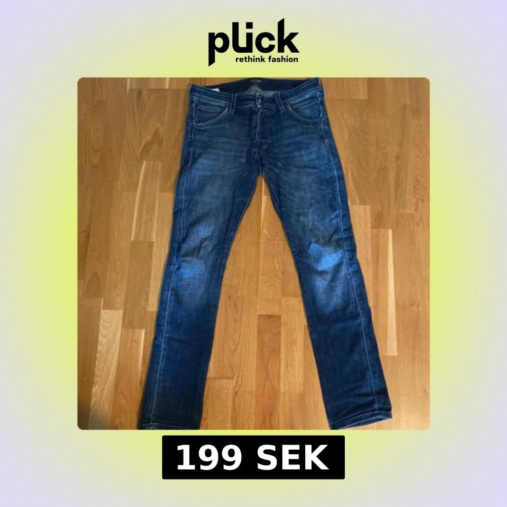 Snygga blå jeans modell slim/glenn från Jack & Jones som är perfekta för en avslappnad och trendig stil. Köptes för cirka 600-700 kr.