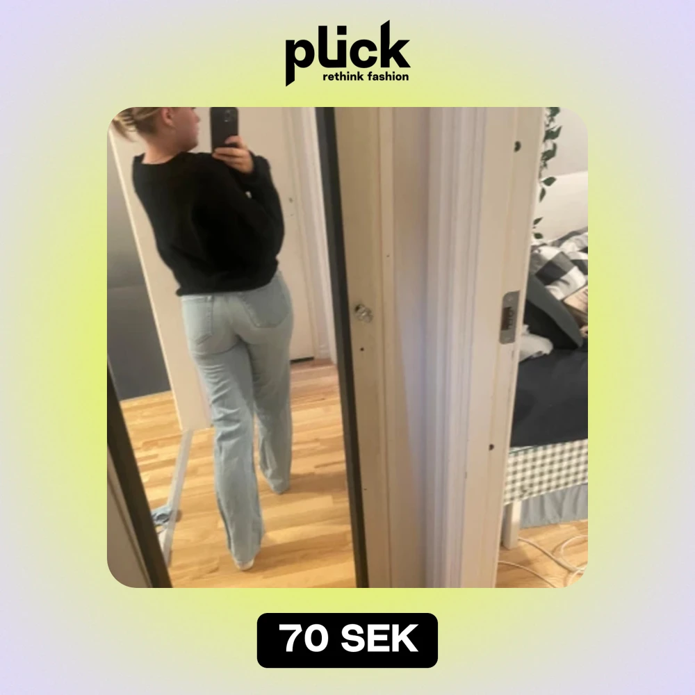 Blå straight jeans från h&m, jag skulle säga att dom är typ mid waist
