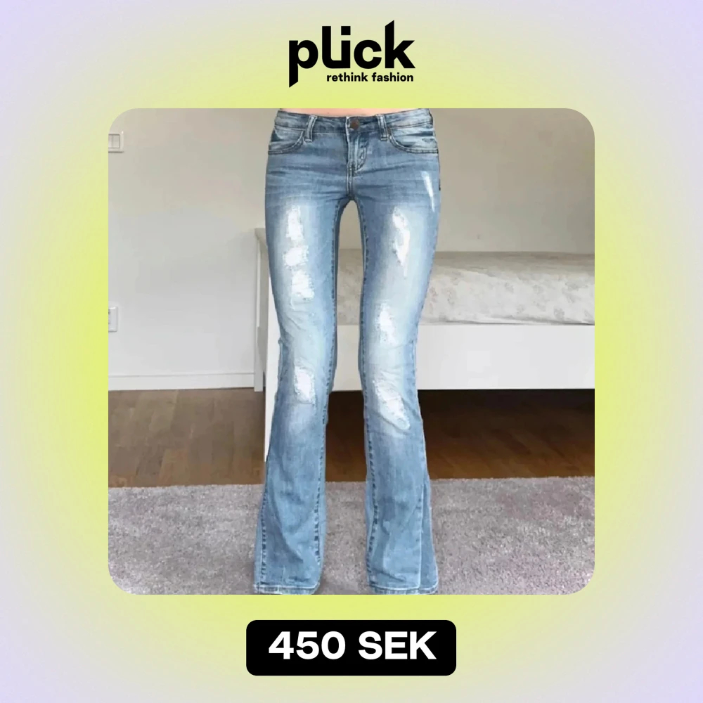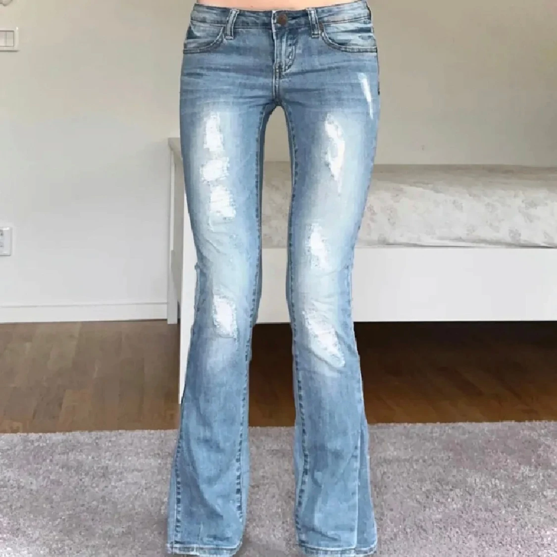 Snygga jeans med ”slitningar”, midjemått 73, Innerbenslängden 78