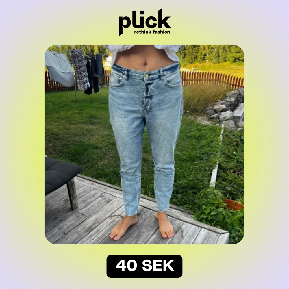 Blå mom jeans i stl 44. Använda men i bra skick.