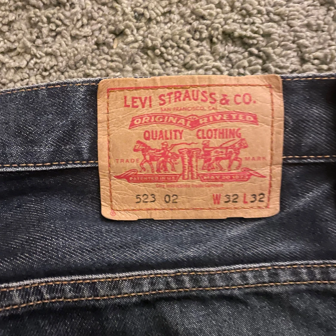 Blå Levi’s jeans i bra skick Mått: Midja:41 cm Bredd vid lår: 31cm Benbredd: 23cm Längd:103cm