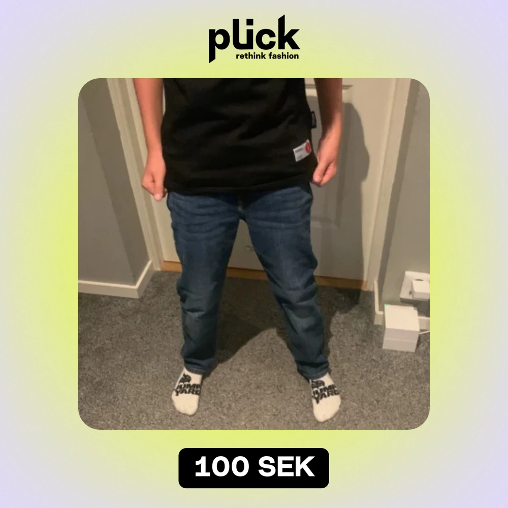 Säljer ett par snygga blå jeans. De är i bra skick och har en klassisk design med fem fickor och dragkedja. Perfekta för vardagsbruk och kan matchas med nästan vad som helst. Passar både till skolan och fritiden.