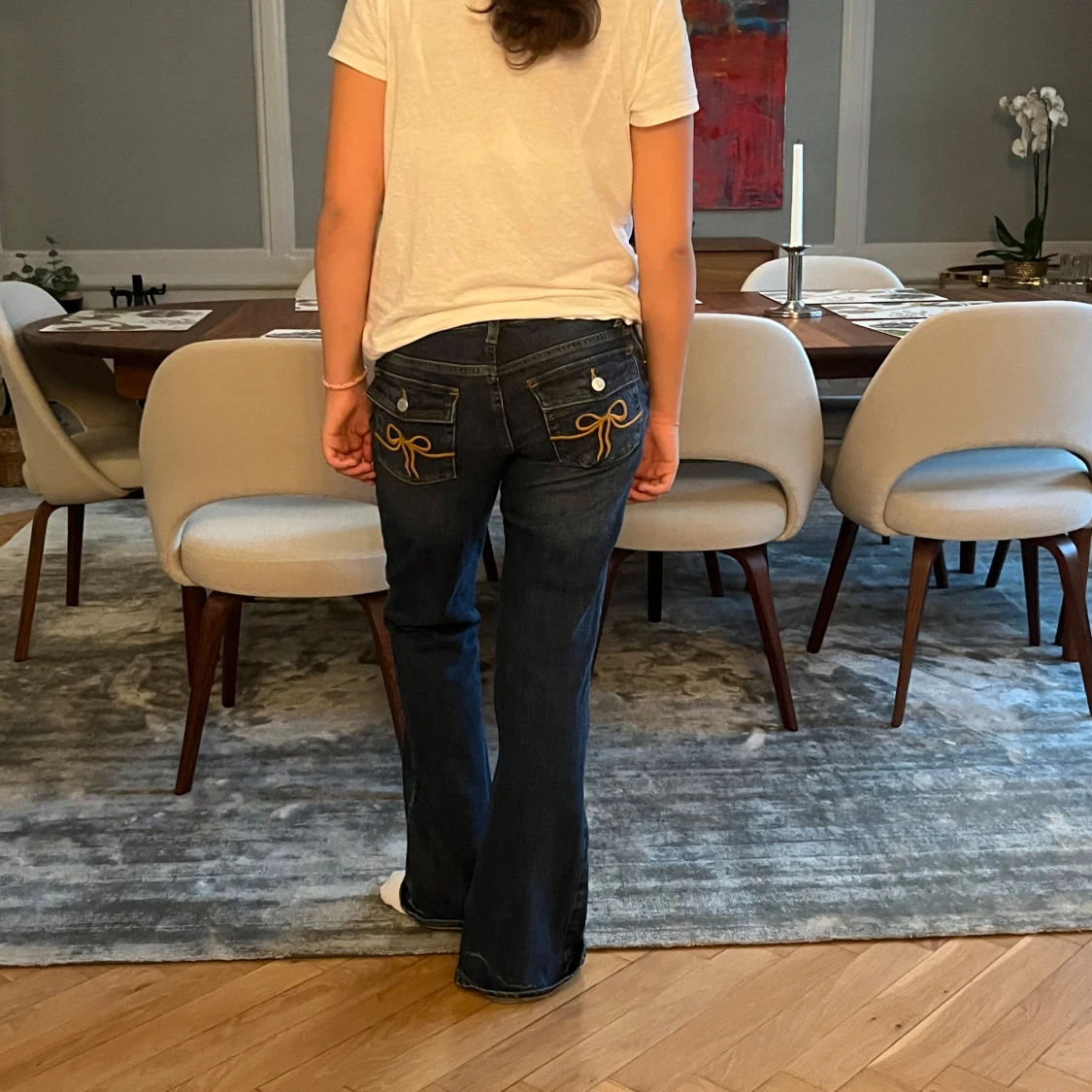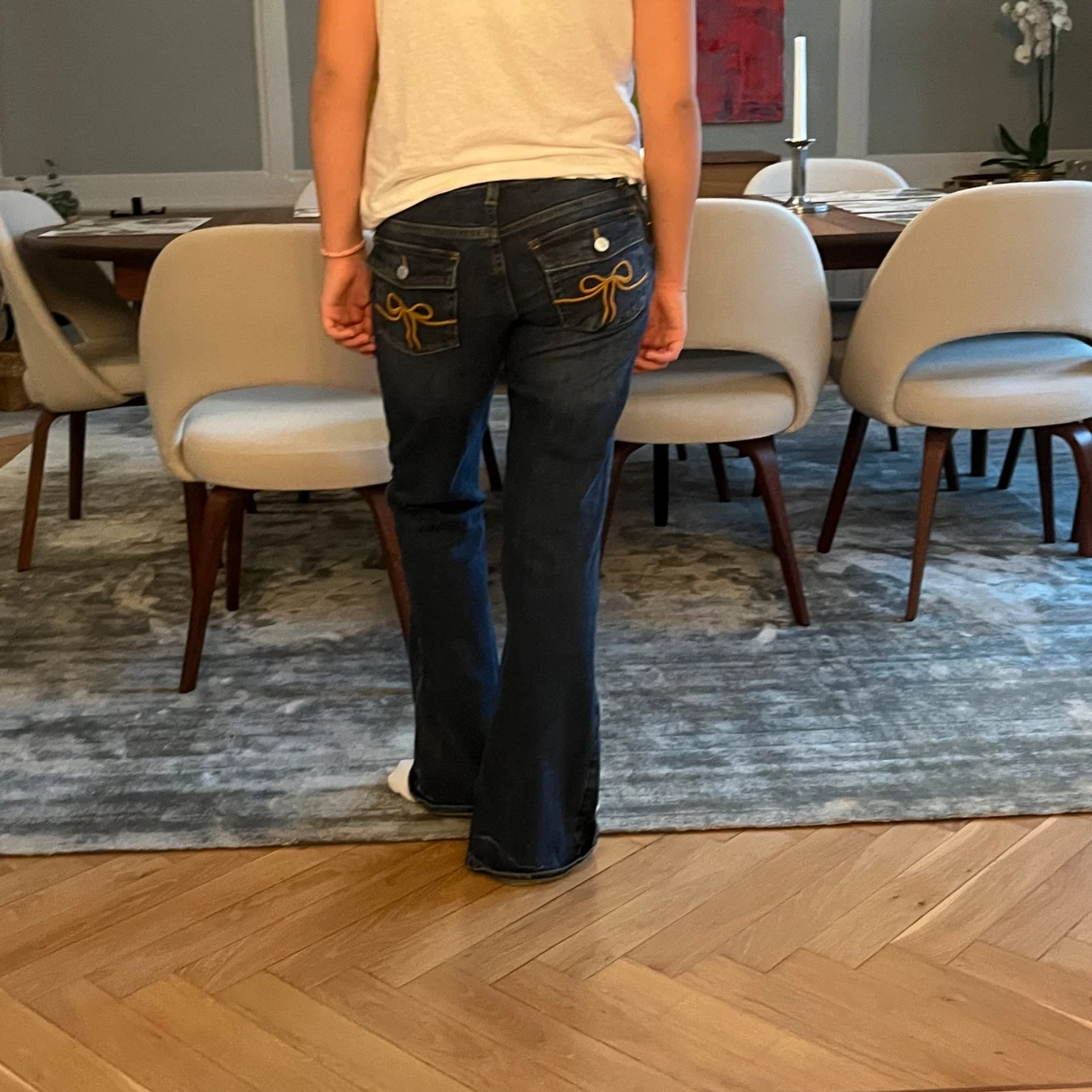 Super söta jeans med rosetter ifrÄn Monki i storlek 26/30