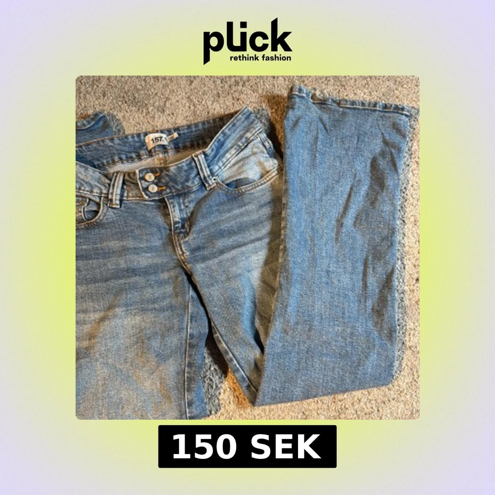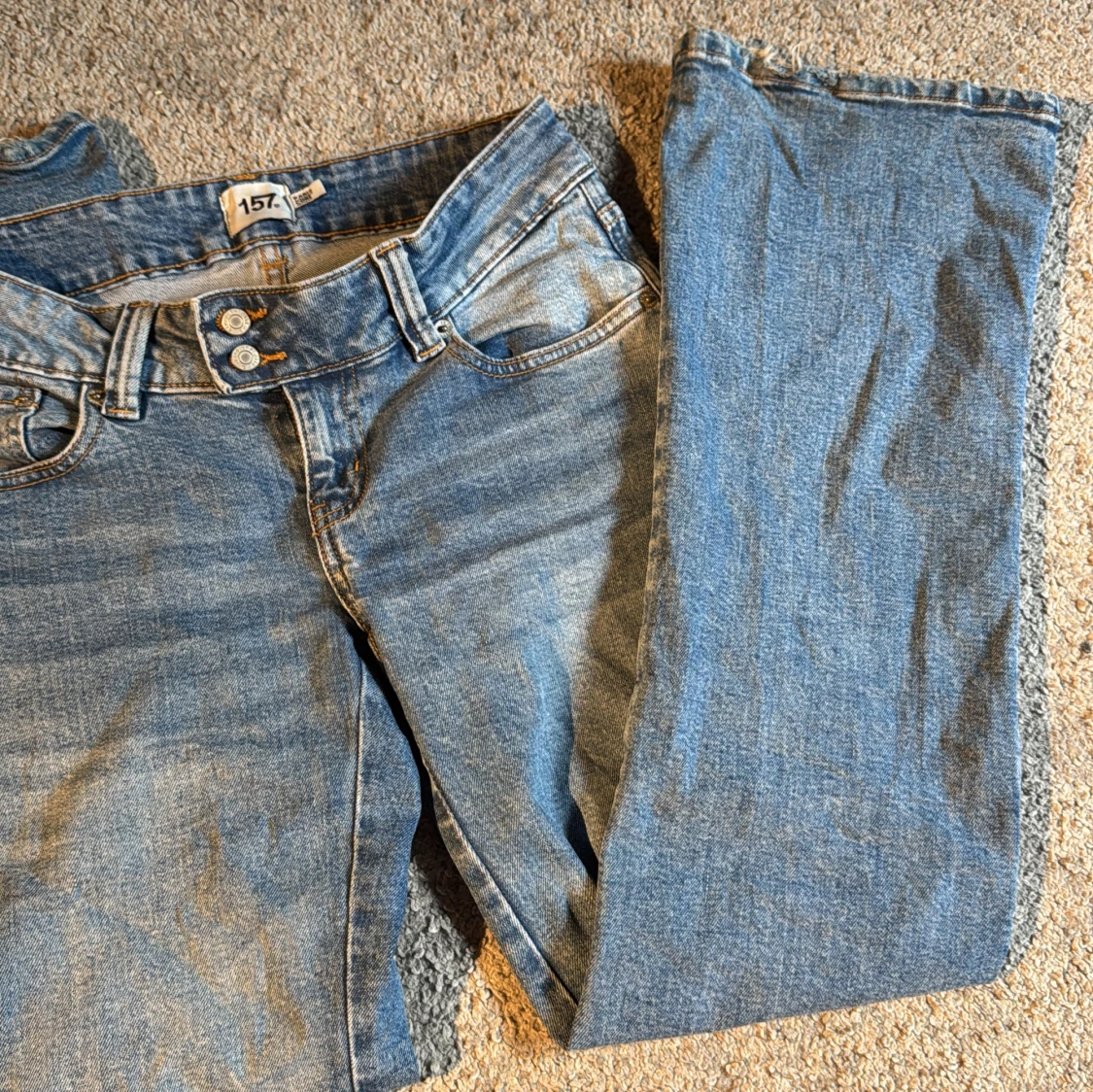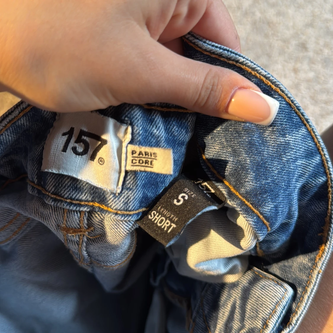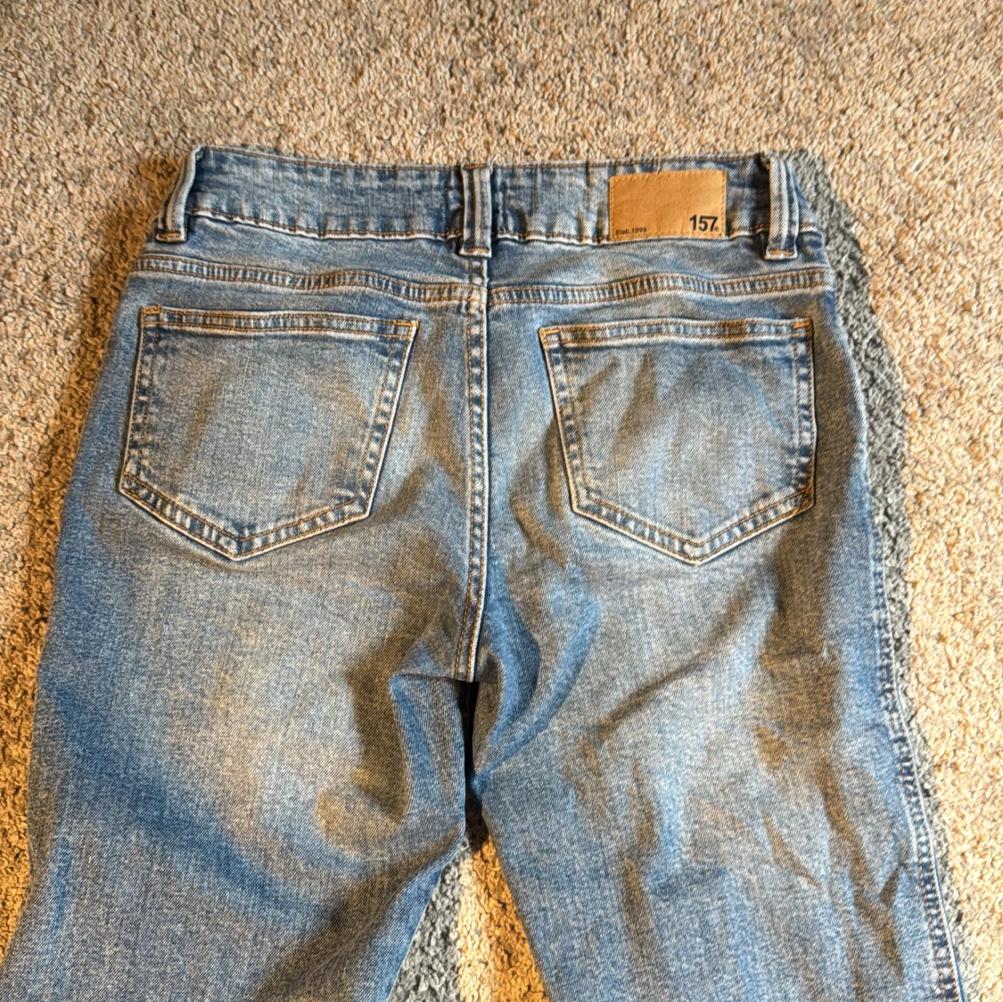 Klassiska blå jeans från 157 Paris Core i storlek S och kort längd. Jeansen har raka ben, fem fickor och snygga kontrastsömmar.