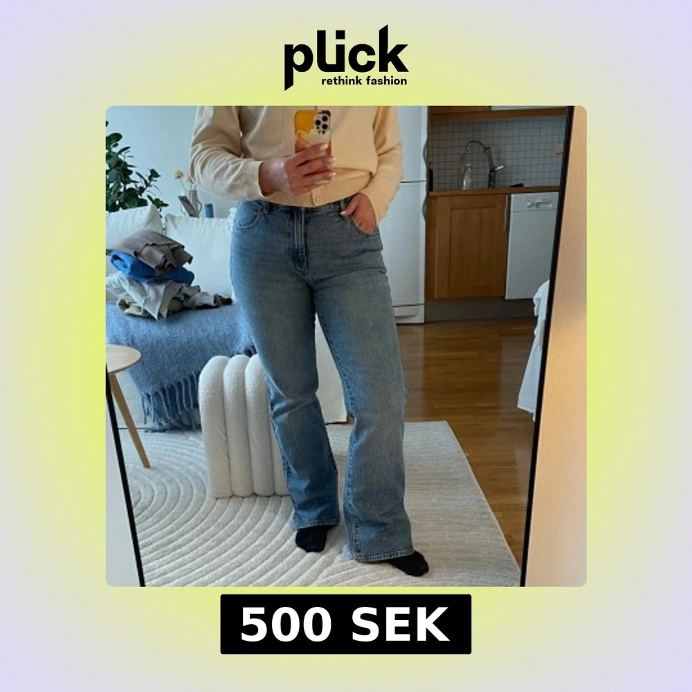 Snygga blå jeans från Abrand Jeans med en klassisk femficksdesign. De har en bootcut-stil och är högmidjade, vilket ger en smickrande passform. Perfekta för en avslappnad look.